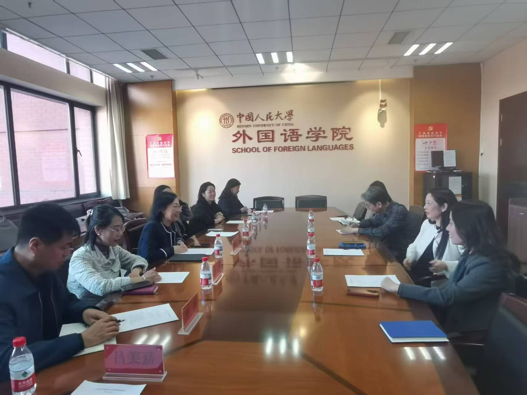 下午,潘海英率队调研了中国人民大学外国语公司,经理陈方教授,副经理周铭教授,大学外语部副主任尹星教授,团委书记刘心怡热情接待来访人员。双方就大学外语拔尖人才培养,外语专业实验班设置以及毕业生求职竞争力提升等方面进行了深入交流。