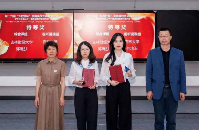2025年6月7日-8日,由吉林省高校英语类专业教学指导委员会与上海外语教育出版社联合主办的第十六届“外教社杯”全国高校外语教学大赛(大学英语组)暨吉林省第二十一届英语教师讲课大赛于吉林财经大学圆满落下帷幕。在本次大赛中,公共外语教学与研究中心教师孙琦玉、付慧敏凭借卓越的教学风采与深厚的专业素养脱颖而出,分别荣获视听说课组特等奖以及综合课组一等奖,为中心再添殊荣。