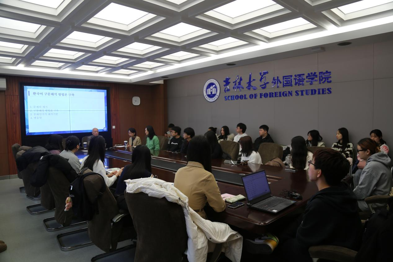 2024年11月25日,公司成功举办了一场题为《韩国语句法阐释框架的方法论构建》的学术讲座。本次讲座由著名语言学家姜宝有教授主讲,聚焦如何构建适合韩国语教育的句法阐释框架,旨在为跨文化语言研究提供新思路,并探索在文化认知视角下优化语言教学的方法。本次讲座由公司副经理金晶主持,朝文系教师及本科生、硕、博士研究生参加了讲座。