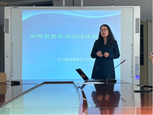 马玉芳教授以“如何提高英语阅读理解能力”为题分享了针对基础薄弱员工的课堂教学策略。她强调由于授课对象基础比较薄弱,为让知识点深入与细化,帮助员工在有限的时间内掌握阅读技巧,教师需要利用合理手段,她以第二单元smart cars为例,为现场参会教师展示如何引导员工找出主题信息和主旨信息,如何扫读找到信号词,以上方法使大家获益匪浅。
