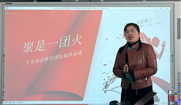 会议由教学团队负责人许春燕老师主持。首先,她以“聚是一团火”为开场白,感谢该团队自2022年成立以来,各个单元备课组长以及组员的辛勤付出和大力支持。截至到目前为止,团队已经确立了“知识+能力+素质”三位一体的教学目标,建立了“听说、阅读、写作、翻译+文化与个人成长”的教学内容体系,并依托超星学习通平台建课,实现了教学资源团队成员共享,员工共享的良好局面。随后,许老师针对教师存在的困惑,请团队四位优秀教师分享他们的教学活动设计和实施过程。
