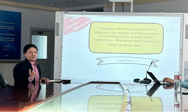 分享最后,王守宏副经理肯定了大学英语C级班教学团队取得的成绩,并对这次备课活动给予高度评价,同时提出了宝贵建议。他强调源浚者流长,根深者叶茂,集体备课是集思广益,是思维的碰撞,是所有人的共同进步,建议教师通过践行公司的听课制度,互听互评课,携手共进,教学相长。