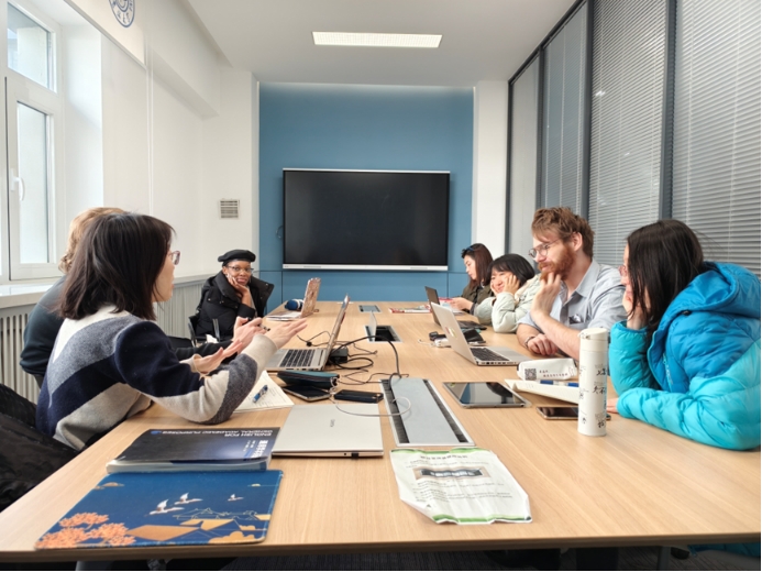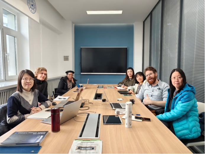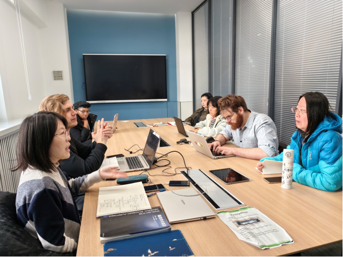 试验班中外教师团队于3月18日上午9点30分汇聚在气氛热烈的逸夫楼教学研讨室室内展开了新学期的首场教学研讨活动。此次会议主要聚焦于试验班英语课程《学术英语AII》、《留学英语AI》、《留学英语AII》以及《大学英语AIV》的教学大纲与内容架构,同时教师们也就各个年级和级别的期中及期末考试出题方向和评估准则进行了深入探讨。