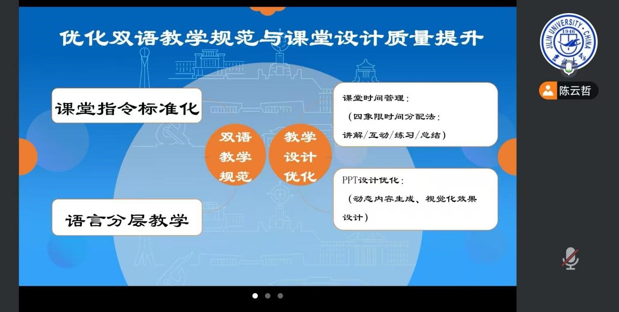 为进一步加强对课堂教学组织、教学内容、教学课件等方面的指导,确保课堂教学状态良好,切实提升课堂质量,按照公司及公司要求,公共外语教学与研究中心日语教研室于2025年4月23日开展了以“优化双语教学规范与课堂设计质量提升”为主题的集体备课活动。由于本教研室教师的教学任务分布在各个时间段,本次会议采取线上会议模式。会议由教研室主任陈云哲老师主持,团队教师积极参与。