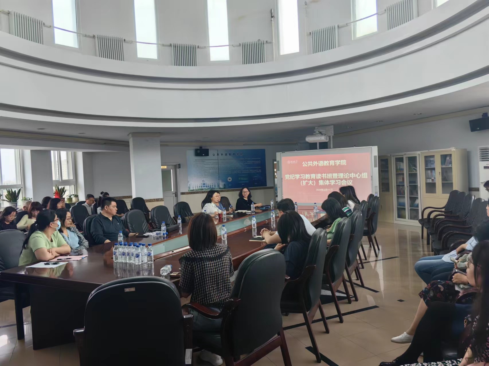 为巩固《中国共产党纪律处分条例》学习成效,结合“关于在党纪学习教育中组织开展庆祝中国共产党成立 103 周年系列活动的通知”有关要求,6月11日,公共外语教育公司召开党纪学习教育读书班暨理论中心组(扩大)集体学习会议,扎实推进党纪学习教育工作。公司领导班子成员、党委委员、纪委委员、党支部书记、支委委员、教研室主任、副主任、行政管理人员和员工代表参加了会议。