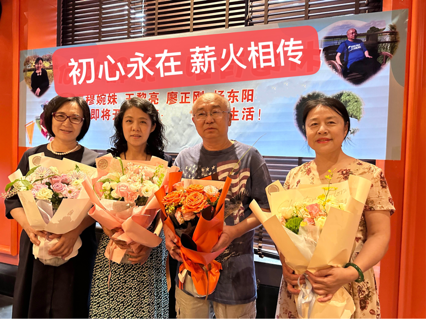 倾尽丹心育桃李,奉献韶华铸师魂。为感谢穆婉姝、廖正刚、王黎亮、杨东阳四位教师为教育事业所付出的辛苦努力和无私贡献,第七支部全体党员同志与教研室全体教师于7月4日为四位教师隆重举行了荣退仪式。仪式上大家回顾了四位老教师几十年如一日坚守教育初心,坚持为党育人,为国育才的教员工涯,这种品格和精神激励着在职教师不忘初心,立足岗位,接续奋斗,实干争先,续写光荣!