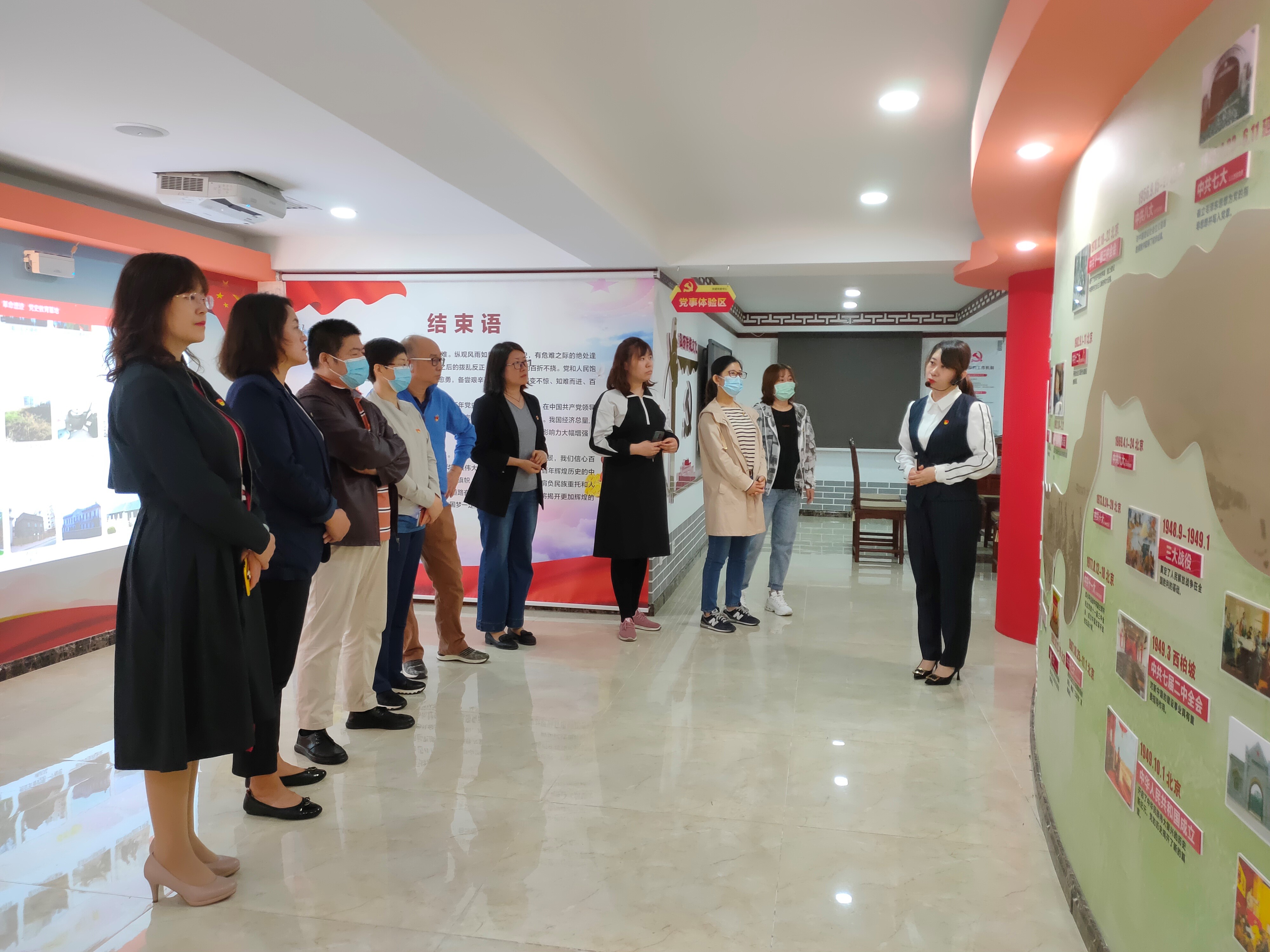 为认真领悟习近平总书记在党史学习教育动员大会上的重要讲话精神,做到学史明理、学史增信、学史崇德、学史力行,学党史、悟思想、办实事、开新局,以昂扬姿态奋力开启全面建设社会主义现代化国家新征程,以优异成绩迎接建党一百周年,EMC易倍官网公共外语教育公司大学英语教工第七支部于2021年6月2日下午来到支部共建单位——“文庙社区5S党史学习教育基地”进行党史学习实践活动。桃源街道党工委副书记孙超、党办主任苏丹、文庙社区党委副书记赵南等文庙社区领导热情接待,并全程陪同指导实践活动。