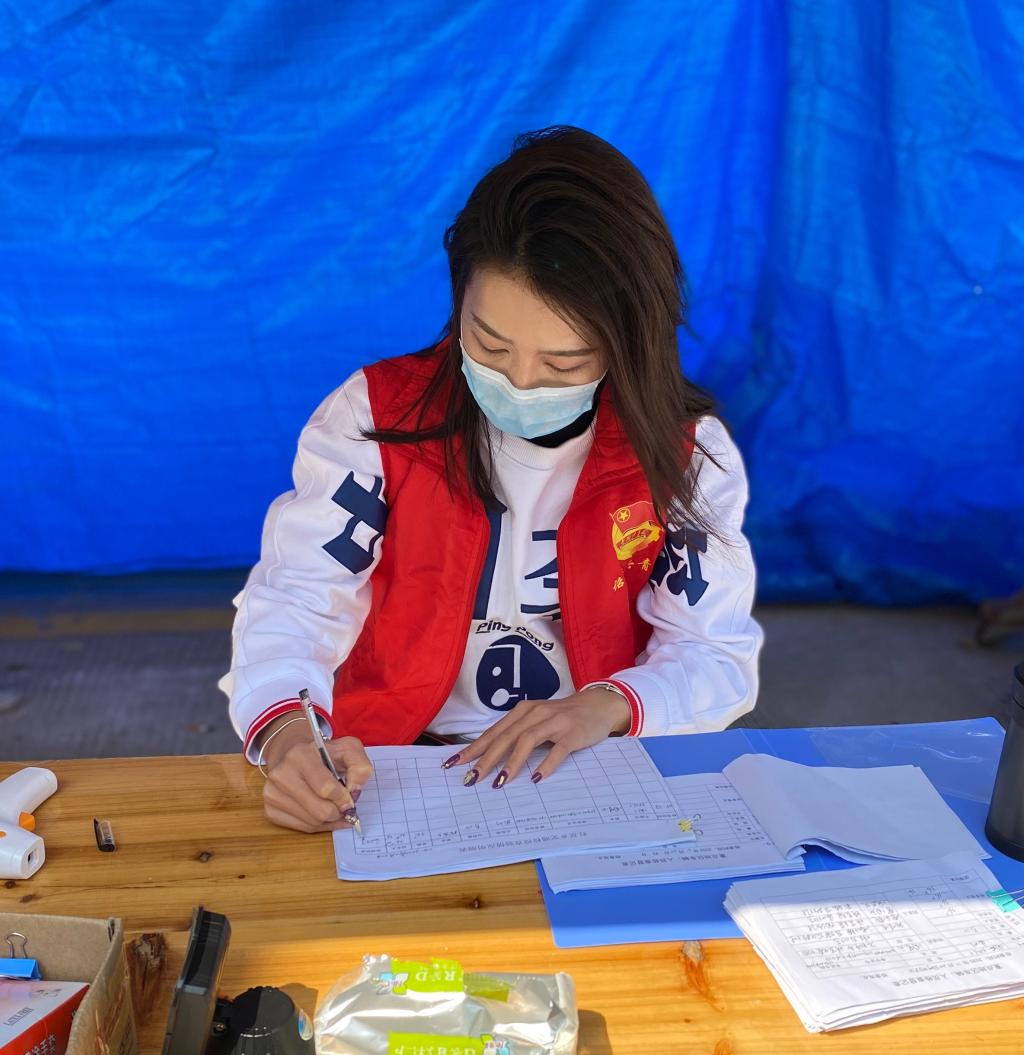 “闲在家里也没事,虽然我家里没有医生,但应该为家乡防疫尽一份力!”, 杨惠津同学说到。她的家乡在福建省漳州市,疫情比较严重。疫情发生后,她马上申请担任漳州市诏安县的志愿者,每天对路口进出车辆和人员信息进行登记,检测体温,协助疫情排查。惠津是一米七几的大个子,在校时每天都漂漂亮亮的,是一名兼职模特,也在公司运动会上大放异彩。现在每天都全副武装,站在马路边做防疫工作.