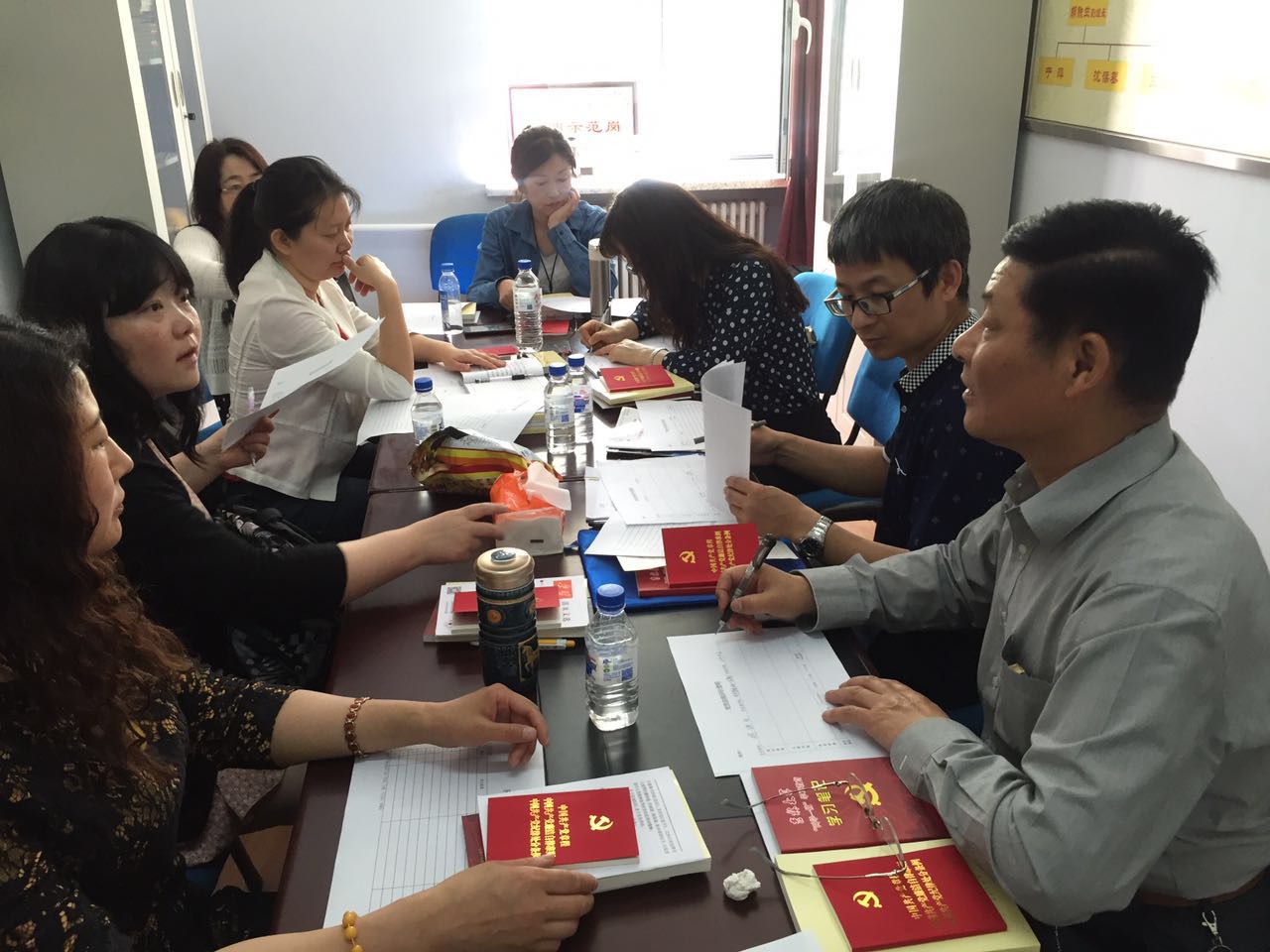 按照公司、公司党委的要求,公共外语教育公司研究生第一教研室党支部2016年6月2日上午(9;00—11:10)在外语楼教研室召开了民主评议党员支部会议,除了两位在国外其余党员均到会,并且特邀了两位非党教师列席会议,会议由代支部书记解修振主持。