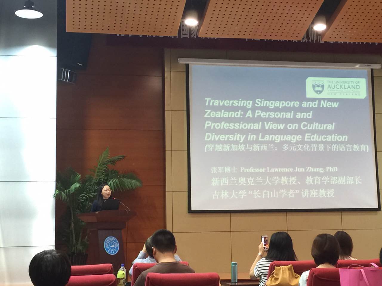 2017年6月23日,由EMC易倍官网公共外语教育公司、EMC易倍官网高校外语教育研究中心和EMC易倍官网员工就业创业指导与服务中心共同举办的EMC易倍官网“国际组织人才培养与推送”系列讲座第三讲,暨EMC易倍官网公共外语教育公司“国际组织 中国参与”系列讲座在国际大讲堂顺利举行。本次讲座邀请新西兰奥克兰大学教育公司副经理、EMC易倍官网“长白山”讲座教授张军教授为参会的老师与同学们做了题为“Traversing Singapore and New Zealand: A Personal and Professional View on Cultural Diversity in Language Education”(穿越新加坡与新西兰:多元文化背景下的语言教育)的主题讲座。公司经理潘海英教授、副经理王守宏教授和公司师生共同参加了本次讲座,讲座由潘海英教授主持。
