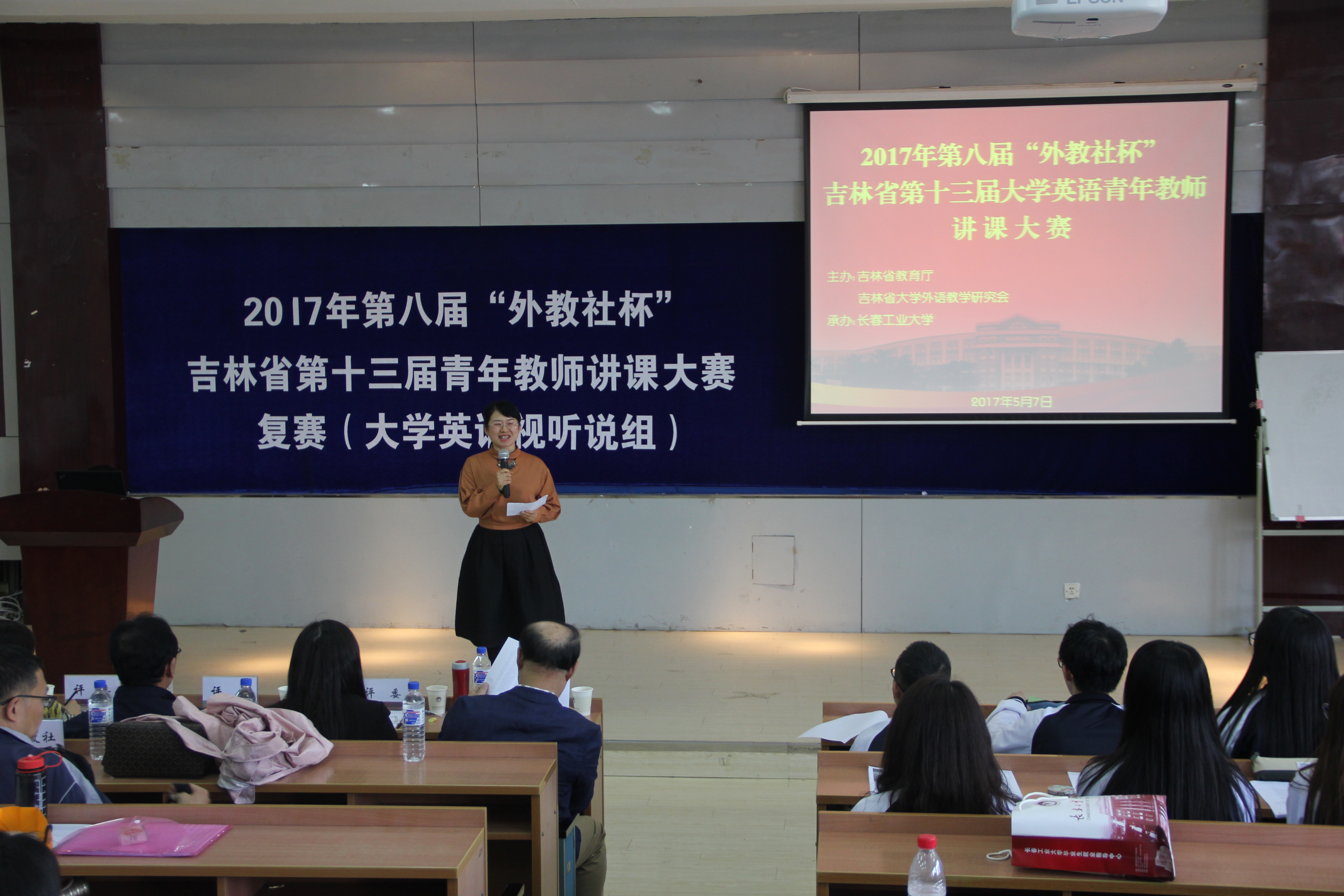 由教育部高等公司大学教学指导委员会、教育部高等公司外国语言文学类专业教学指导委员会、教育部职业院校外语类专业教学指导委员会、上海外语教育出版社主办,吉林省教育厅高教处、吉林省大学外语教学研究会协办的第八届“外教社杯”吉林省第十三届大学英语青年教师讲课大赛决赛于2017年5月6日-7日在长春工业大学举行。