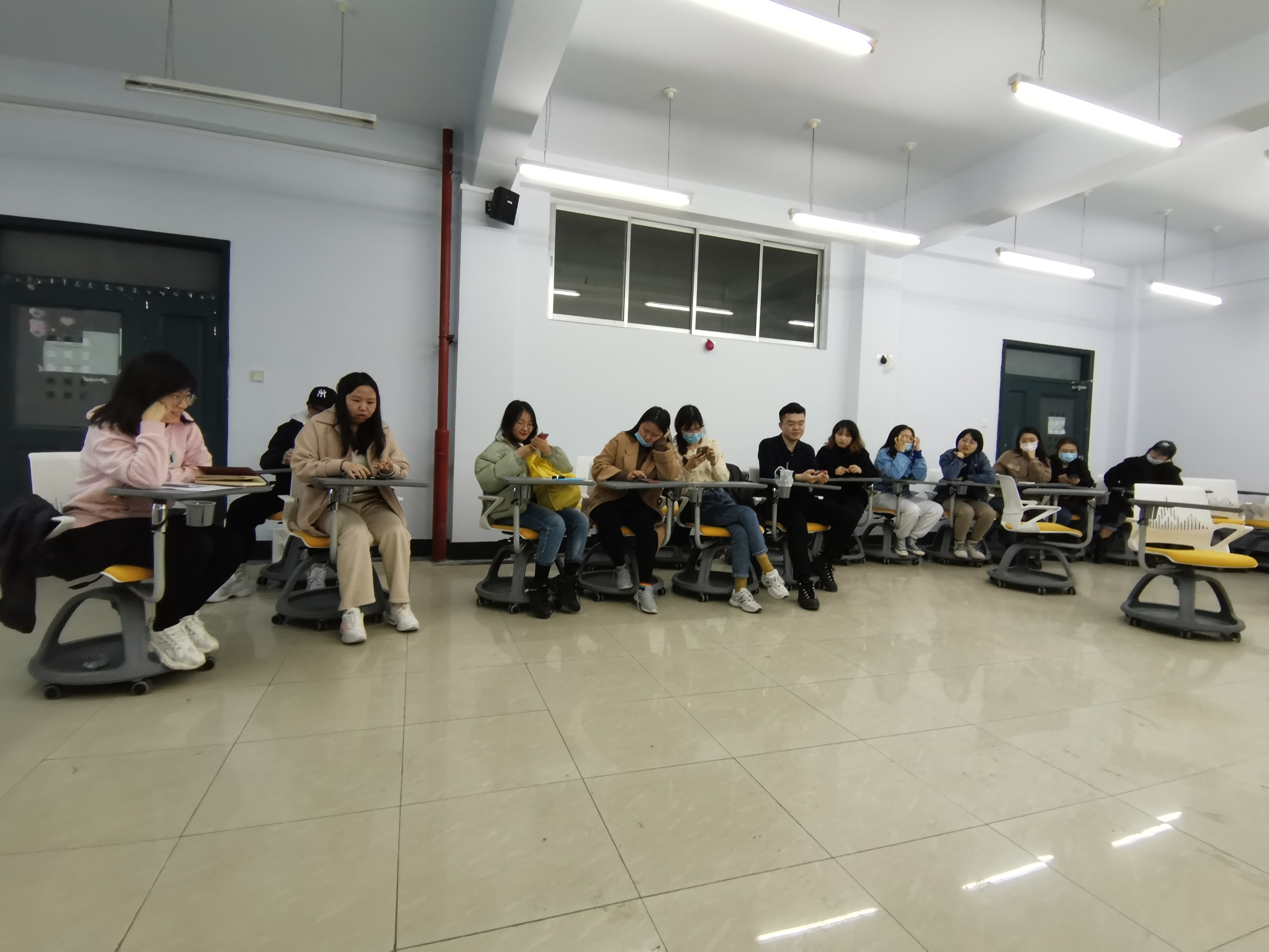 其次,曾老师介绍了2018级硕士研究生的就业概况,就研二同学们十分关心的就业问题,研三王玲和庄红梅同学进行了经验分享介绍。王玲介绍了教师岗位的招聘信息。强烈建议同学们关注相关公众号。在就业时一定要定位清晰,一是定位岗位,二是定位城市,要多方面考虑问题。庄红梅对于公务员岗位分享自身经验。她表示,学妹学弟一定要清楚自己想做什么,要找到适合自己的道路。“选择比努力更重要”,一定要清楚的了解自己适合的道路。明确方向后一定要准备充分,要有充足的时间准备考试并保持充足的信心。