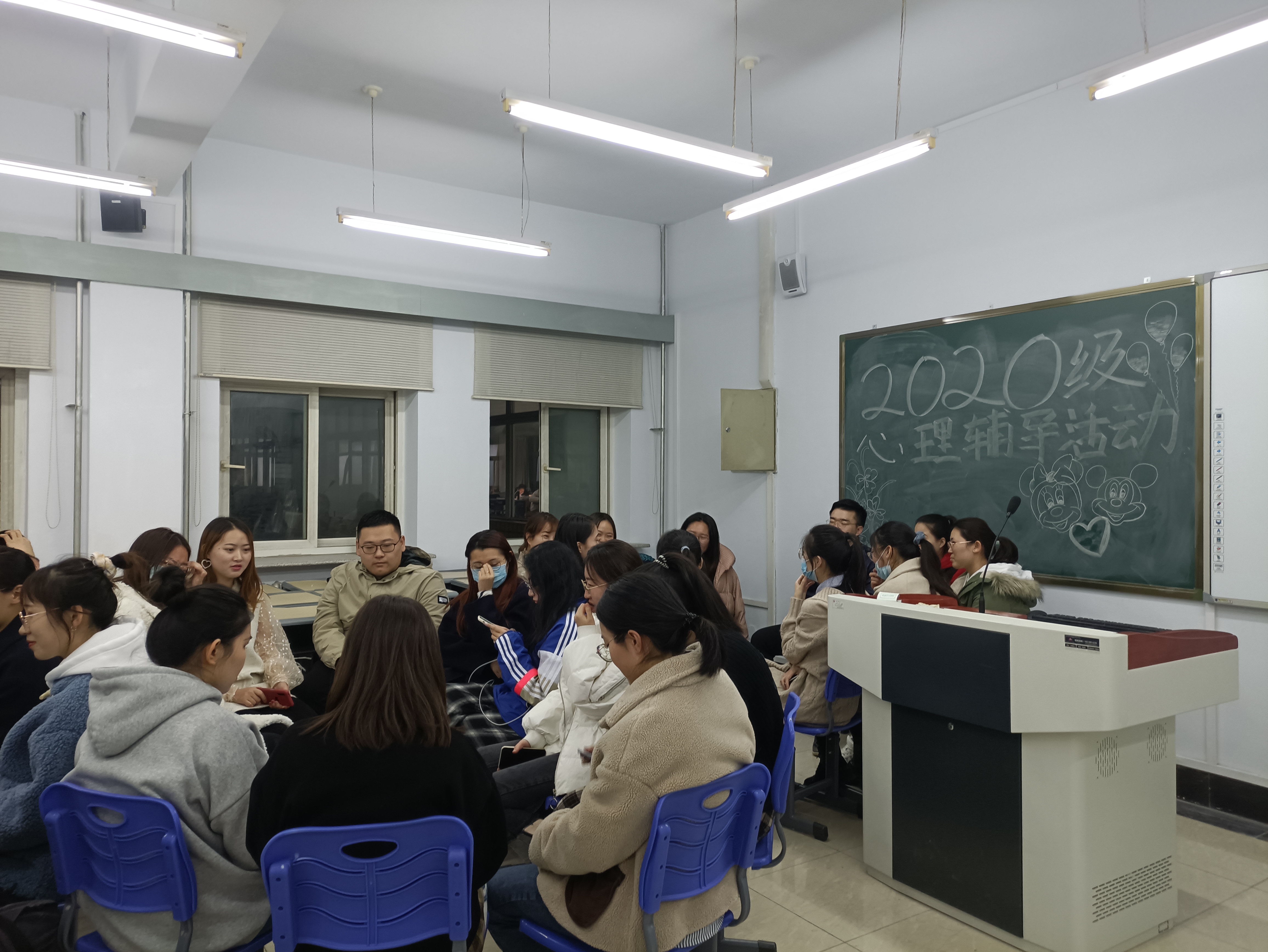 为响应员工心理健康指导中心的号召,促进2020级公共外语教育公司研究生相识,建立互信,增强团体凝聚力和集体归属感。11月7日晚6点30分,在员工朋辈心理辅导员的组织下,在经信A101成功举办了主题为“我们是相亲相爱的一家人”的新生团体心理辅导活动。
