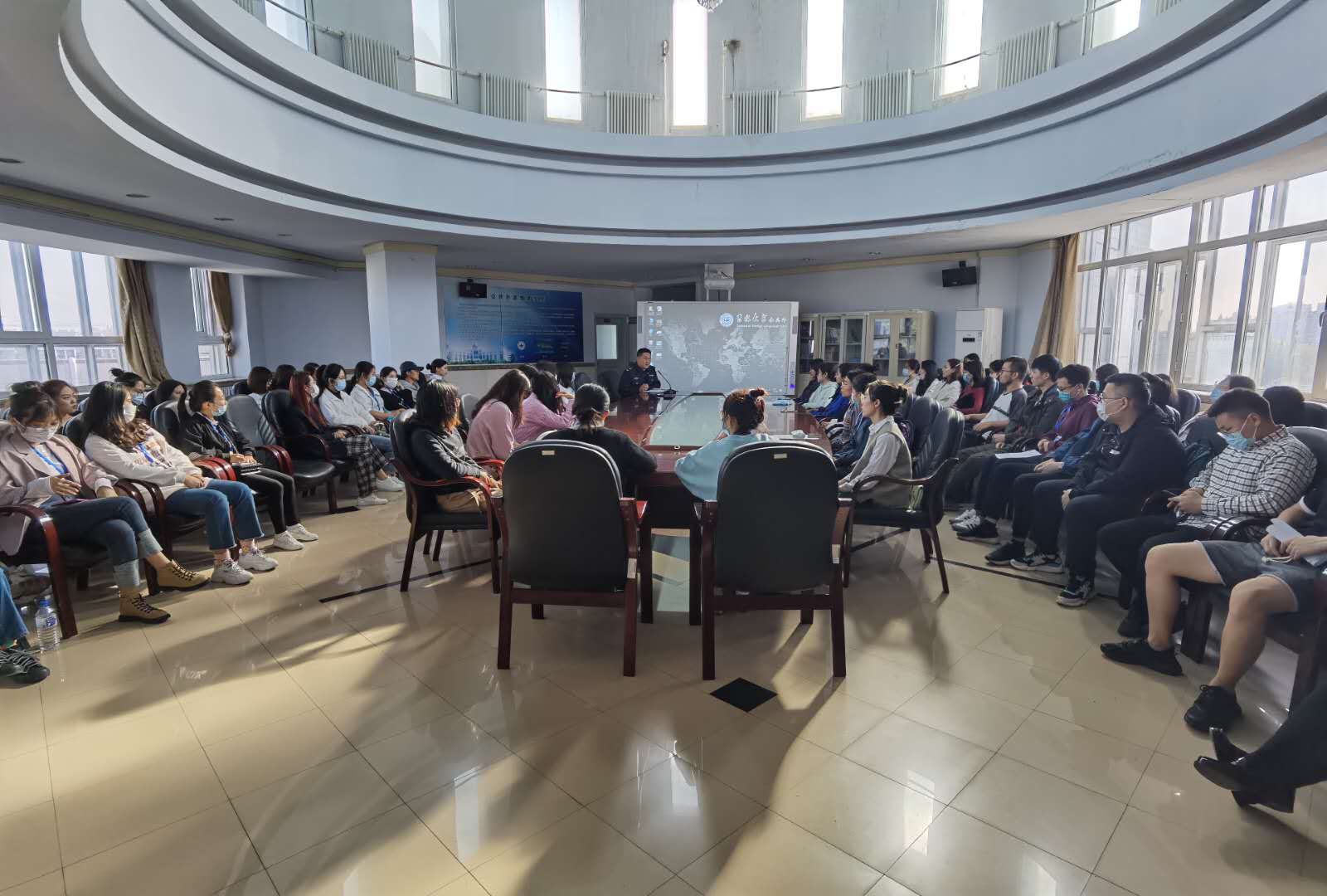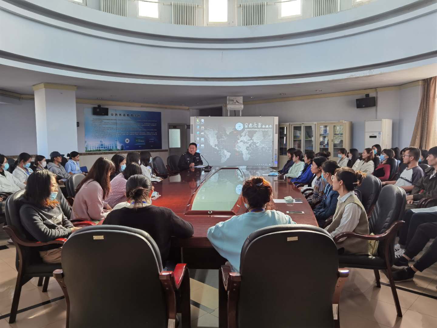 道路千万条,安全第一条。为了增强员工的消防安全意识,提高火灾防范和处置能力,共筑消防安全防火墙,公共外语教育公司于2020年9月23号下午在外语楼6楼大厅举办了“防火安全教育”专题讲座。本次讲座由公共外语教育公司副经理梅松伟主持,校保卫处负责人董立明老师主讲。