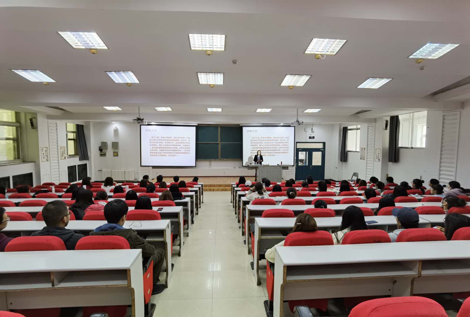 2020年9月23日上午,公共外语教育公司经理潘海英为新生上了“恪守学风校风 涵养家国情怀 争做优秀外语人”为题的开学第一课。研究生辅导员曾媛老师及2020级全体硕士、博士研究生新生参加讲座。