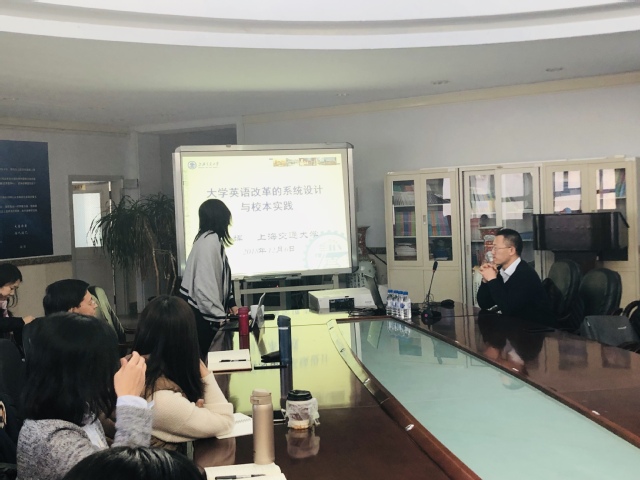 2018年12月6日,上海交通大学外国语公司教授、博士研究生导师、副经理常辉应邀来访公共外语教育公司,在外语楼报告厅做了题为“大学英语改革的系统设计与校本实践”的学术讲座。讲座由潘海英经理主持,来自本校以及其他高校的教师及硕士研究生一同参加了本次讲座。