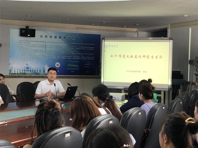 2018年8月31日下午,公共外语教育公司党委书记贺强为2018级硕士研究生做新生入学教育系列活动-“如何有意义的度过研究生生活”主题思想政治道德讲座。