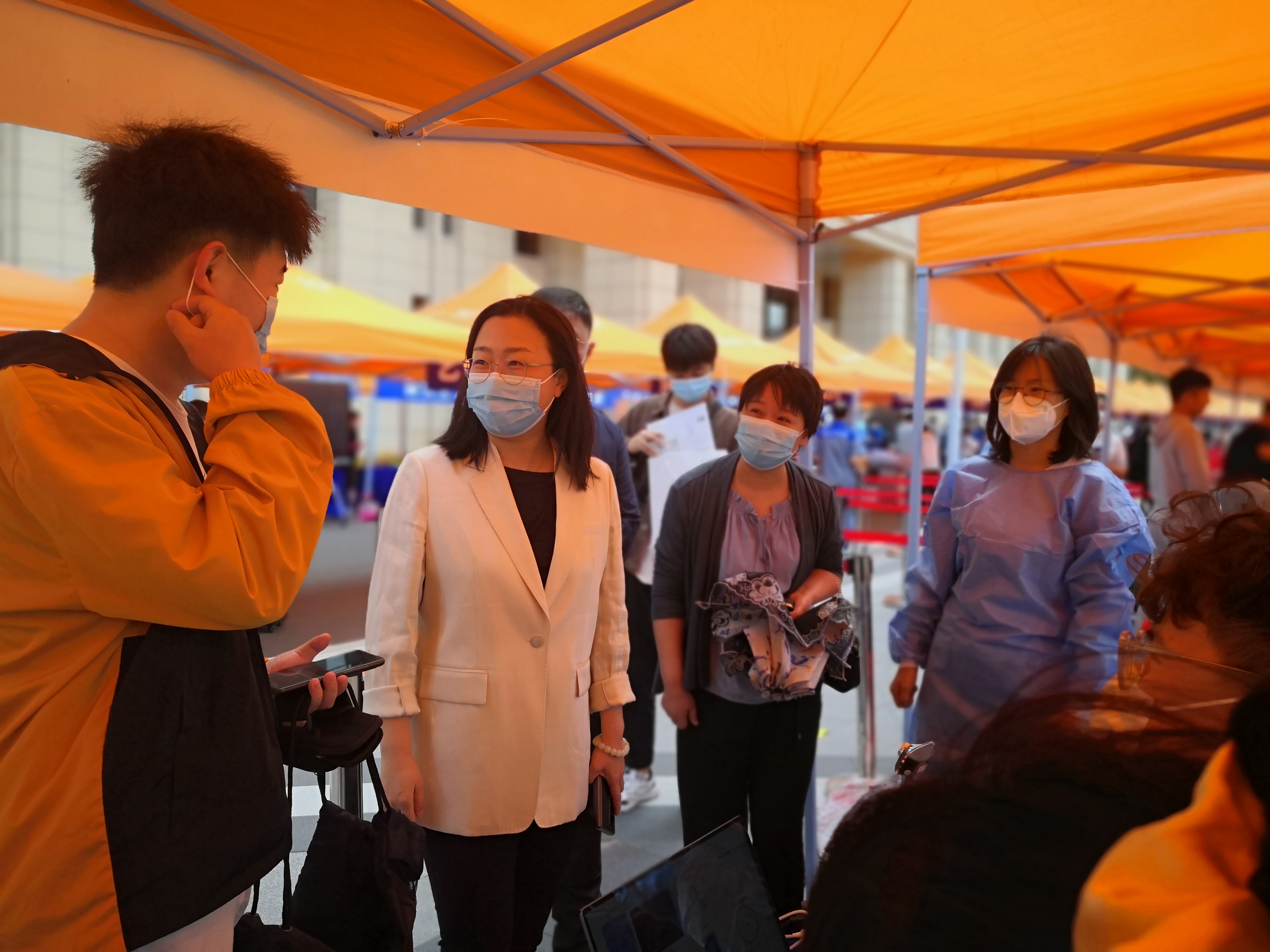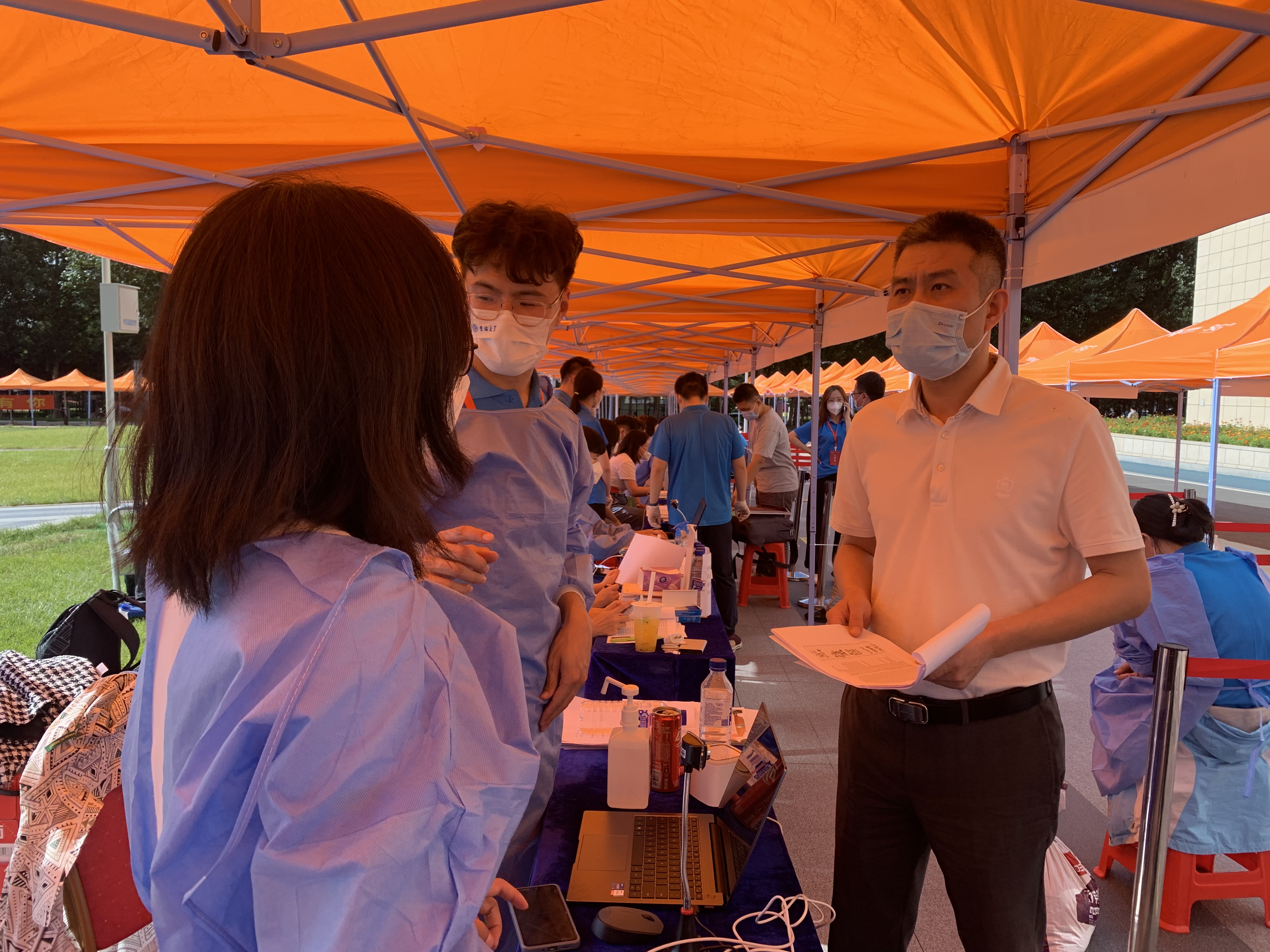 报到期间,公共外语教育公司党委书记贺强、经理潘海英、党委副书记徐杰和副经理沈斌至报到现场和新生宿舍慰问新同学和工作人员,辅导员曾媛老师全程陪同。贺强书记、潘海英经理与同学们亲切交谈,对大家的到来表示热烈欢迎,耐心询问同学们的旅途情况、入校感受和今后规划等等,并语重心长地提醒同学们要注意入秋保暖和防疫卫生。徐杰副书记询问工作人员的防疫物资是否充沛、早午饭是否按时吃、在外面值班是否辛苦,再三叮嘱大家时刻戴好口罩、提高防疫意识,并对大家饱满的精神状态和无私的奉献精神表示肯定。沈斌经理对报到人数详细了解后,对因疫情防控政策未能及时报到的新生情况加以了解及关怀。