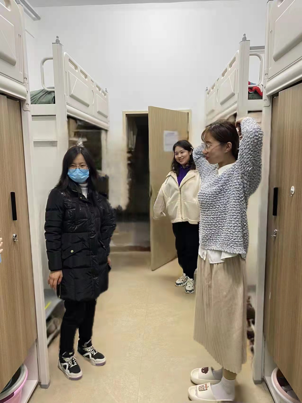 走访过程中,老师询问了同学们在寒假期间的学习与实践经历,了解了员工的假期生活和思想动态以及同学们的返校防疫情况。仔细查看了员工宿舍的环境卫生,强调了用电安全等相关事宜,叮嘱同学们要遵守公司的住宿规定,提高安全用电意识。同时要求大家严格遵循公司的疫情防控要求,做好个人防护和每日健康监测工作,合理安排作息时间,认真学习,营造积极健康的宿舍文化等。