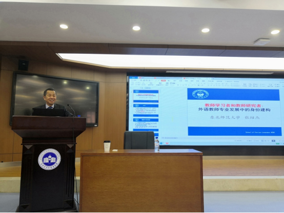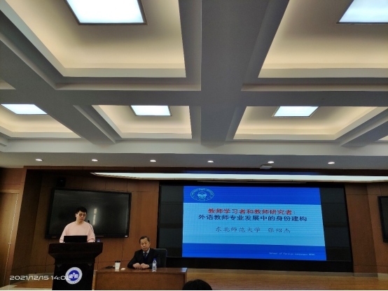 为深入贯彻落实习近平总书记对研究生教育工作的重要指示和全国研究生教育工作大会会议精神,学习习近平总书记回信勉励全国高校黄大年式教师团队代表的有关精神,深化公司产品质量,进一步提高研究生导师队伍与素质,公共外语教育公司协同研究生院于2021年12月15日,邀请东北师范大学外国语公司博士研究生导师张绍杰教授做题为“教师学习者和教师研究者:外语教师专业发展中的身份建构”的学术报告。学术报告由副经理姜峰教授主持,经理潘海英教授、研究生导师及博士、硕士研究生参会。