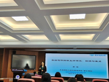 同伴互评是同伴反馈、同伴编辑或同伴评价等概念的总称,指学习者在学习过程中以口头或书面等方式给予同伴的反馈,其研究历史可以追溯到20世纪80年代。高瑛教授指出,近年来随着二语写作同伴互评研究的不断深入, 研究内容和话题越发宽泛。高教授结合其团队有关同伴反馈的系列成果,系统论述同伴反馈研究的理论支撑、研究对象、方法路径和结果阐释。此后,高教授分享其近期关于二语写作同伴互评的文献计量分析。该研究应用科技文本挖掘软件CiteSpace,对近10年同伴互评英文和中文期刊论文进行系统分析,评述国内外研究热点和前沿,以期为今后相关研究提供借鉴和启示。