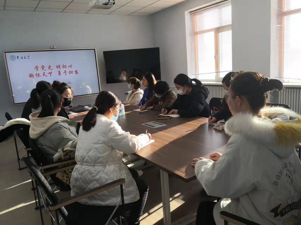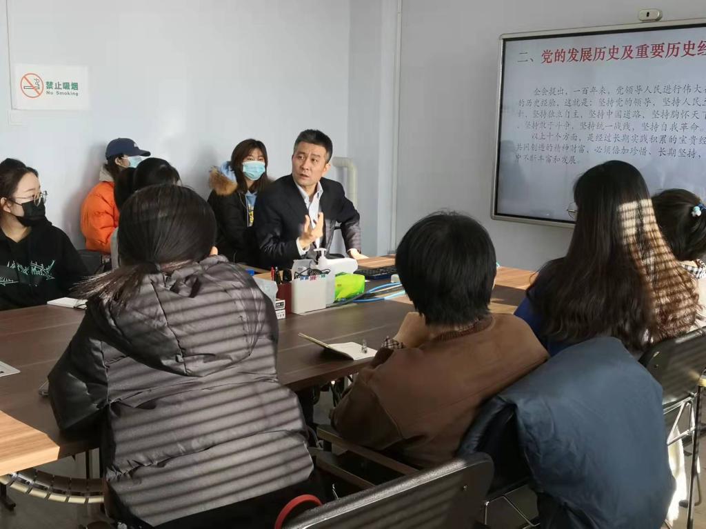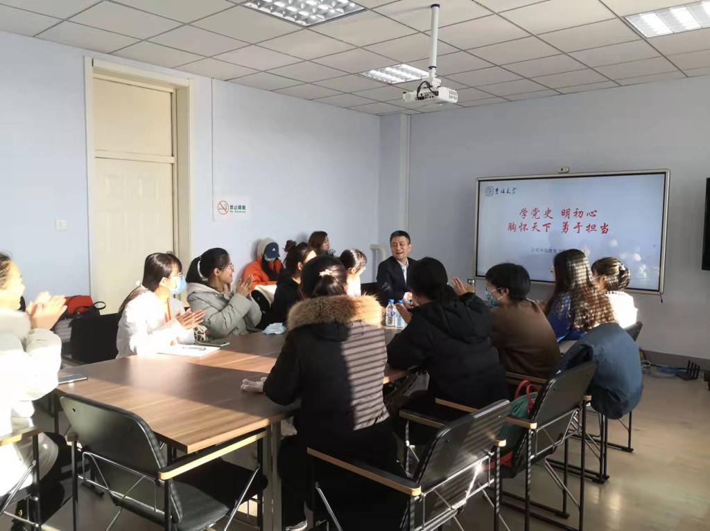 为深入学习贯彻党的十九届六中全会精神,加强入党积极分子的党性修养,提高思想政治觉悟和知识素养,更好了解党的历史进程,坚定入党动机和信念,2021年11月25日9:00,公共外语教育公司党委书记贺强在外语楼六楼601会议室为公司入党积极分子讲授了一堂以“学党史,明初心,胸怀天下,勇于担当”为主题的党课,研究生辅导员曾媛主持此次活动。