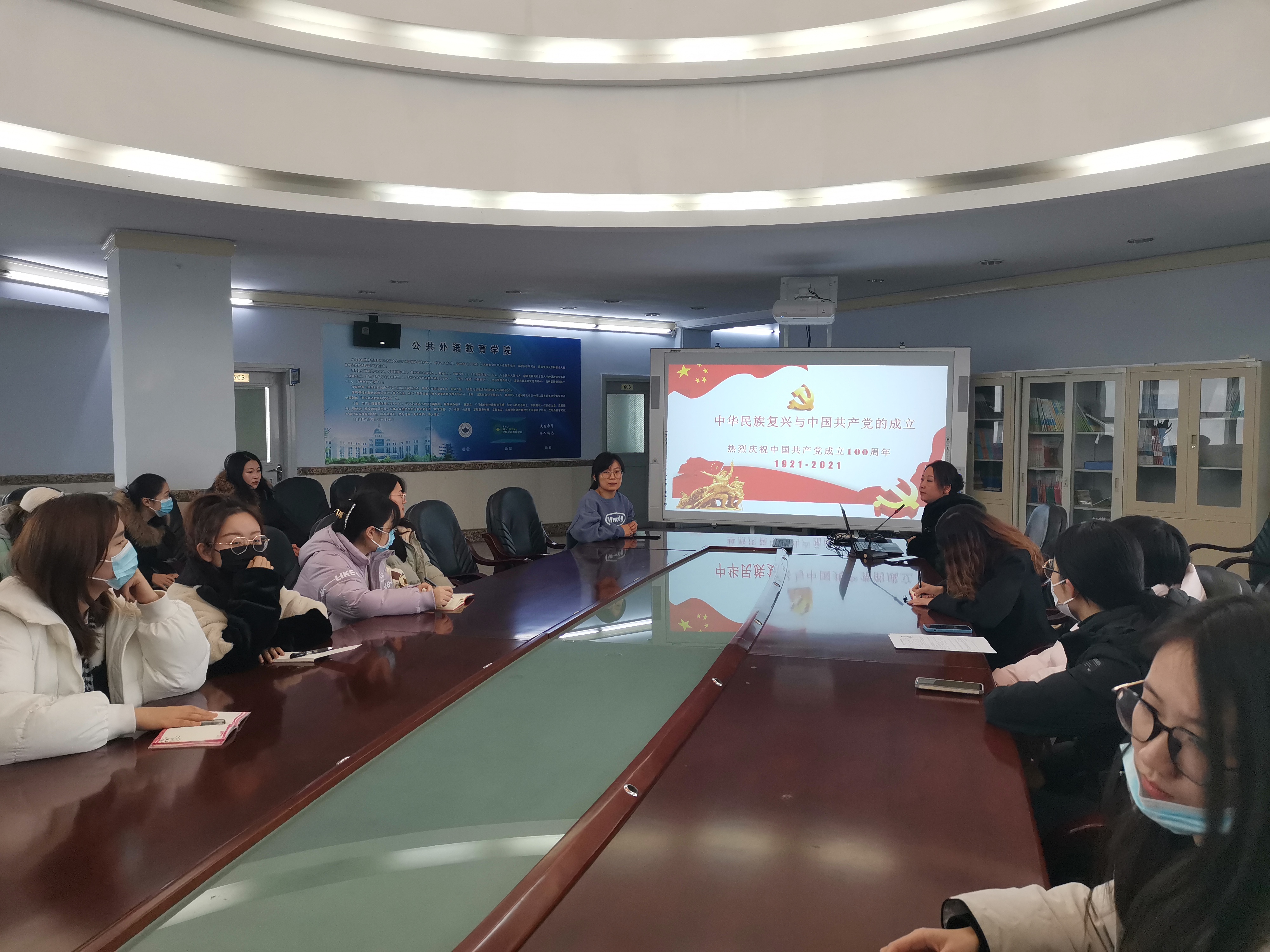 为深入学习贯彻党的十九届六中全会精神,公共外语教育公司组织开展研究生“学习十九届六中全会精神”系列专题活动。11月22日上午9点,公共外语教育公司党委副书记徐杰为2020级研究生党员和入党积极分子上了一堂以“中华民族复兴与中国共产党的成立”为主题的党课,本次活动由研究生辅导员曾媛主持。