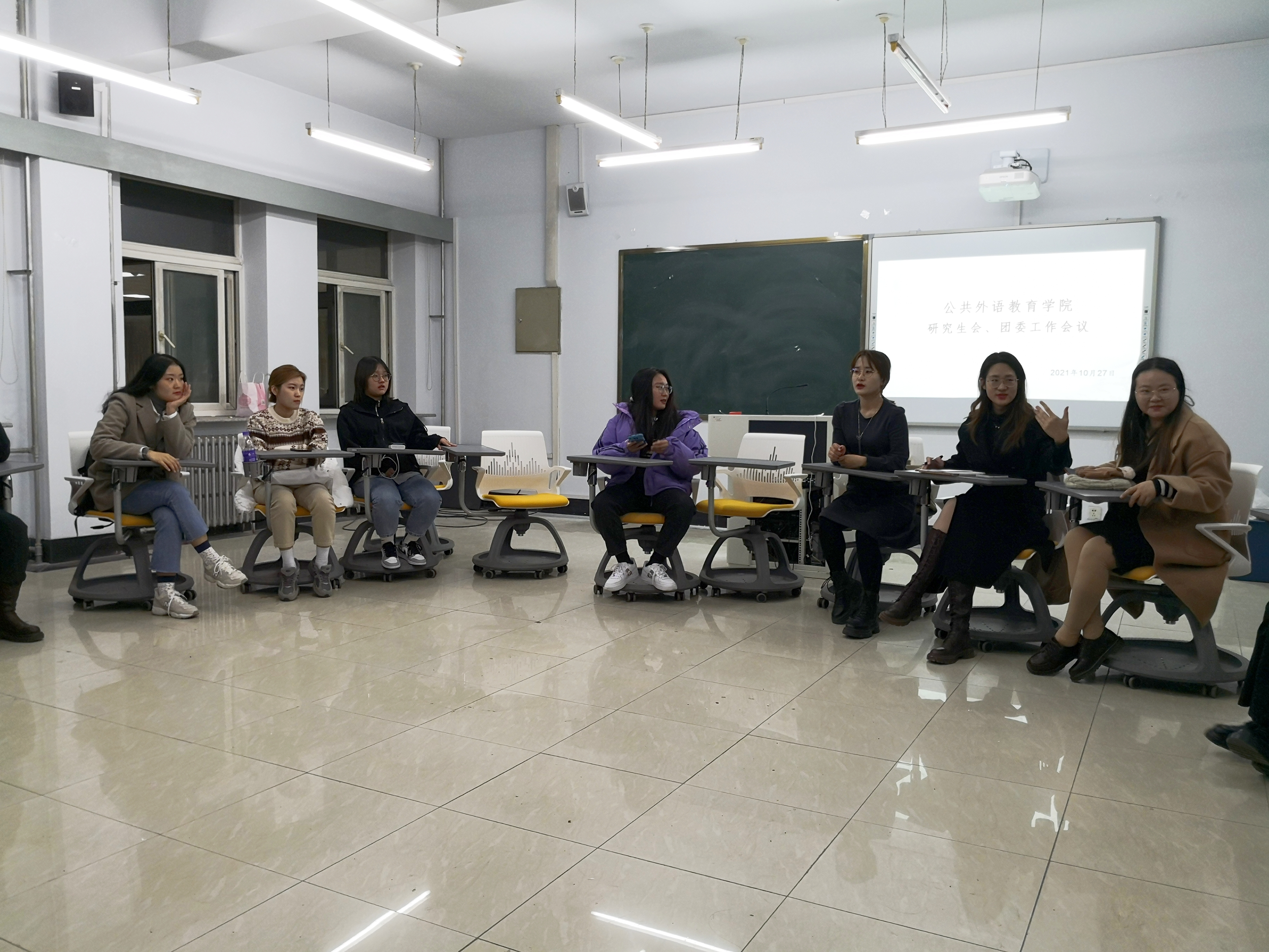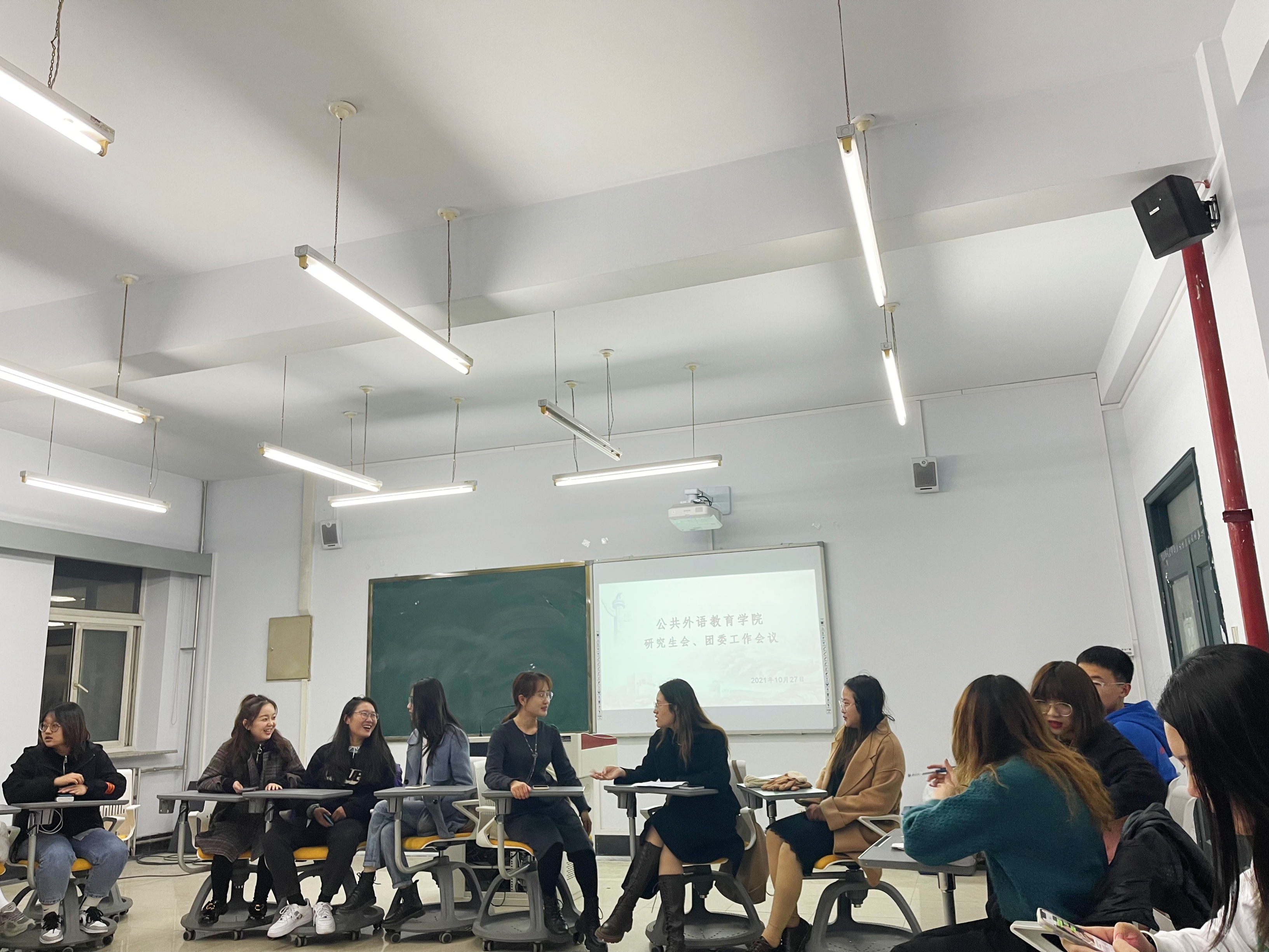 为了让2021级研究生会、团委新成员尽快熟悉工作内容,适应工作节奏,确保新学期各项工作顺利开展,2021年10月27日下午,公共外语教育公司在经信楼D401教室召开了公司研究生会、团委工作会议。本次会议由研究生会主席曲哲主持,团委副书记苑宇萌等2020级员工干部出席会议,2021级全体研究生会、团委成员参加会议。