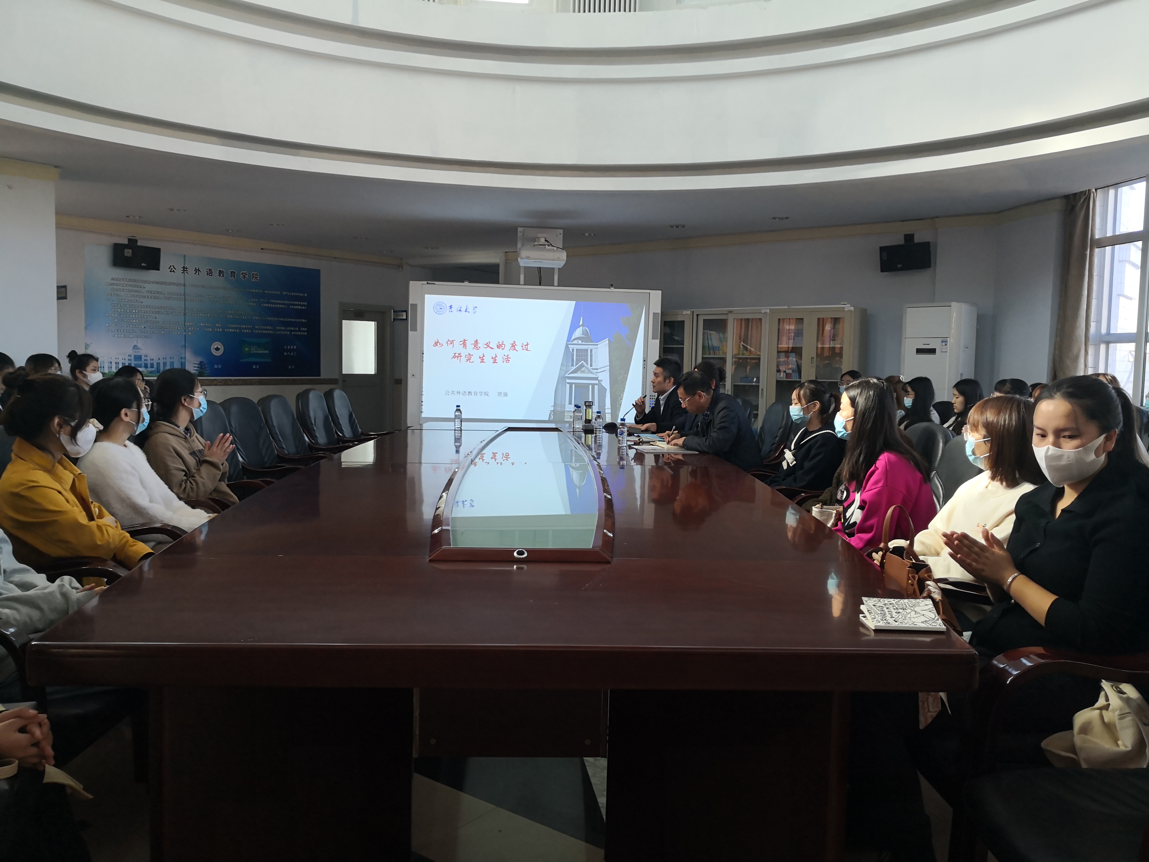 2021年10月11日上午,公共外语教育公司组织了2021级研究生入学教育之思想政治教育讲座。本次讲座由公司党委书记贺强主讲,党委副书记徐杰主持。党建工作联络员蒲韶华、辅导员曾媛以及全体2021级研究生新生参加讲座。