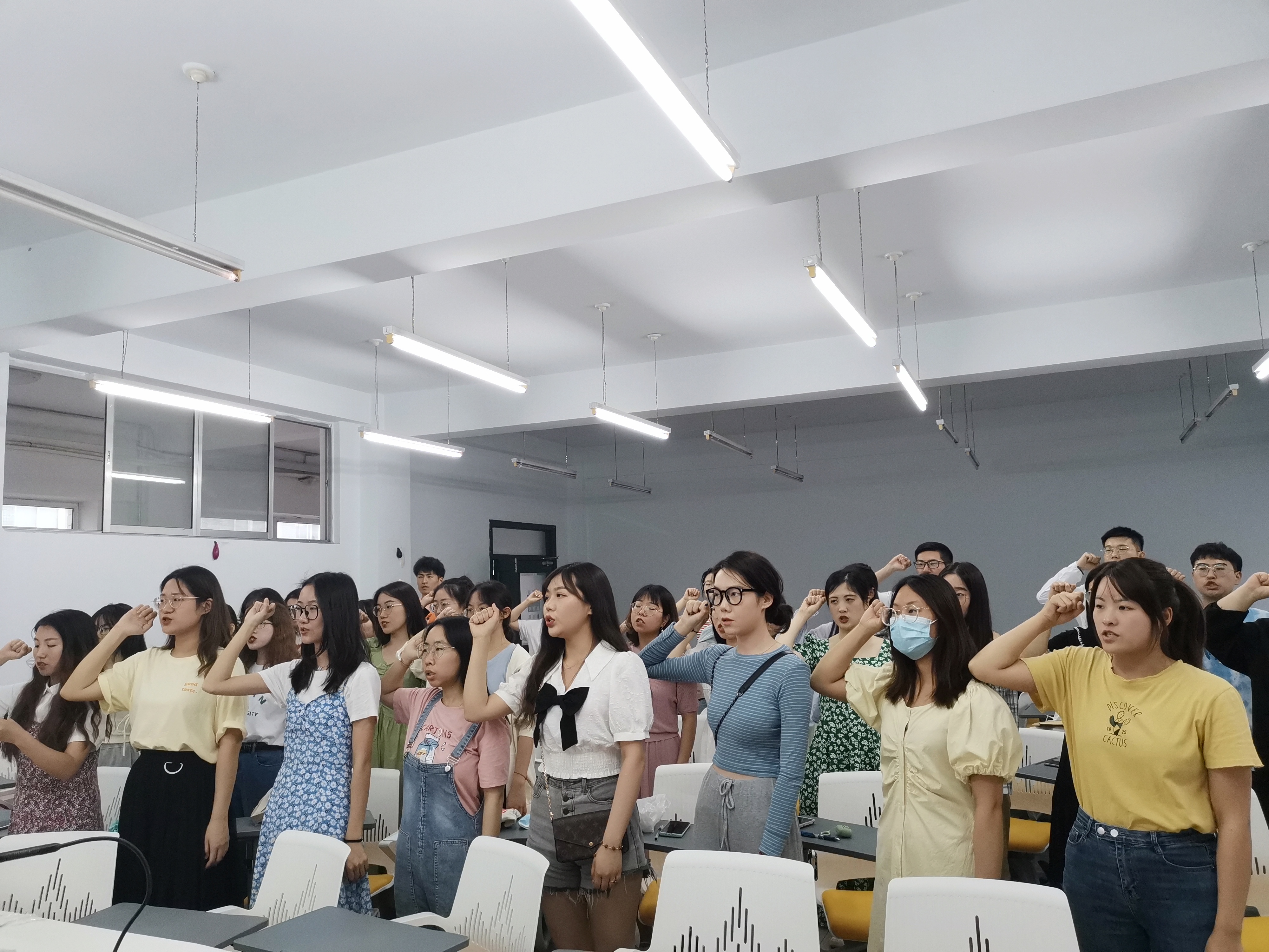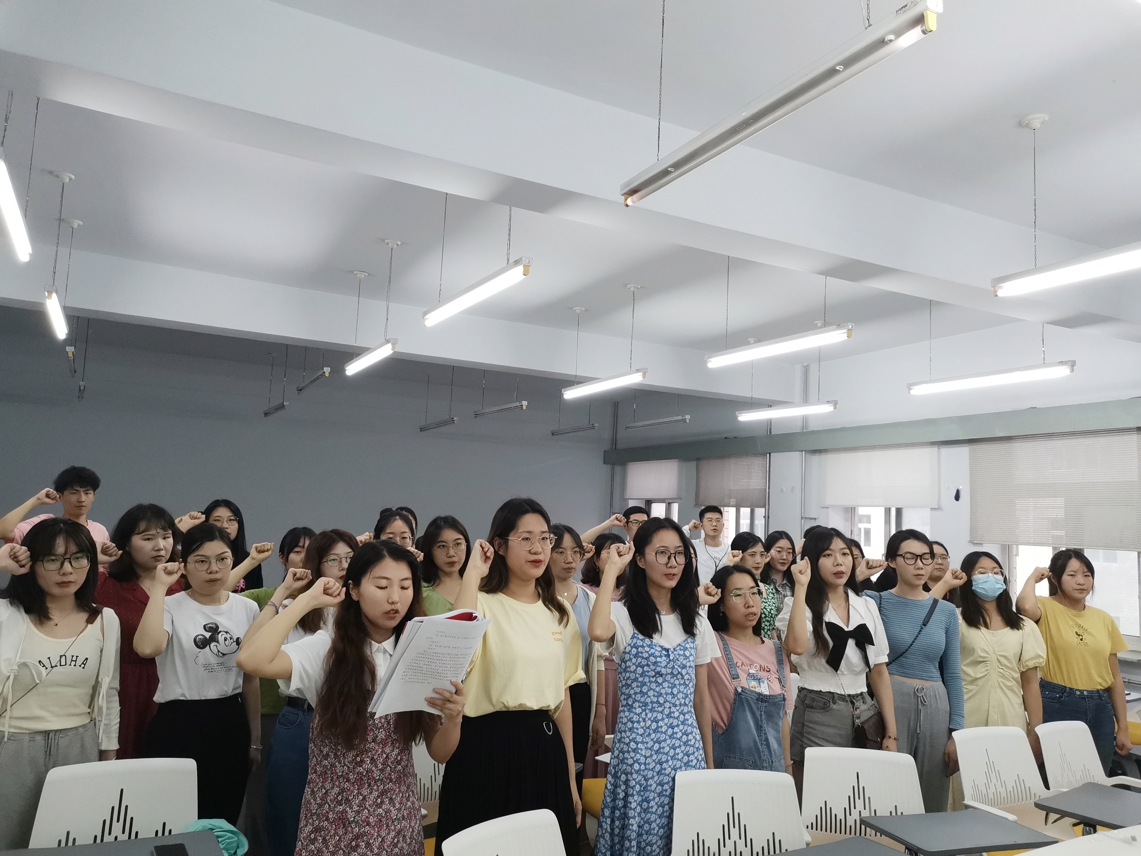 为庆祝中国共产党建党100周年,提高员工的责任感、使命感,坚定理想信念,2021年6月9日晚7点,公共外语教育公司于经信楼D401教室举办了“重温入党誓词,牢记初心使命”的宣誓活动,公司2019级和2020级全体党员参加了此次活动。