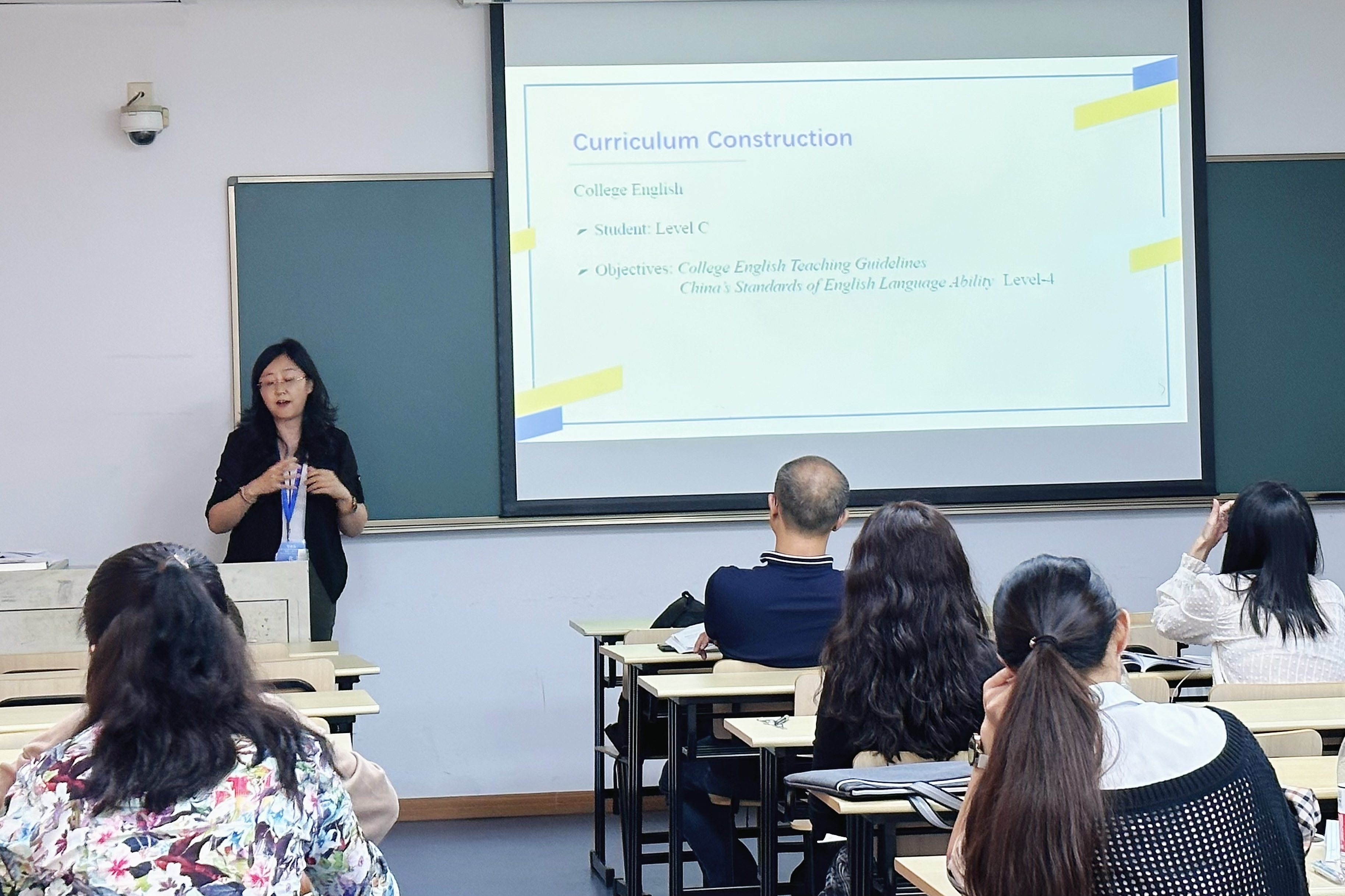 战菊教授主持了北京师范大学宋萑教授的主旨报告 “面向未来的循证教师教育”,并做了精彩点评。初彤和张凤娟两位老师宣读了论文“Identity construction and power dynamics in the co-teaching discourse of native and non-native English-speaking teachers”,分享了中外籍教师在合作教学过程中如何动态建构多元身份,推动专业发展的研究成果。许春燕和战菊两位老师以“课程建设——促进大学外语教师发展的有效途径”为题,介绍了公司大学英语课程建设团队的教学实践,特别分享了大学英语混合式课程建设在促进教师发展、提升教师教学能力和技术运用能力等方面的成效。