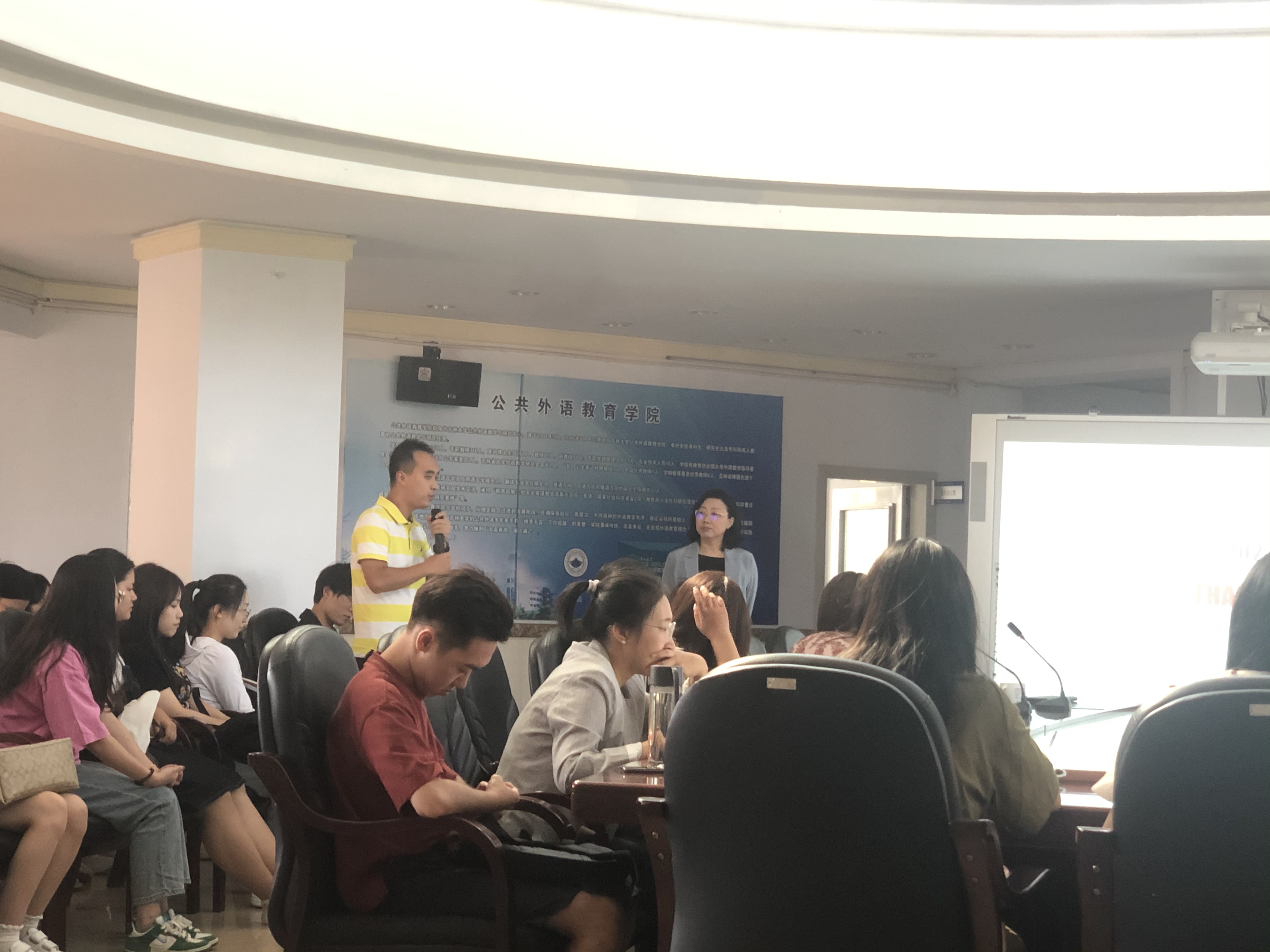 潘经理回顾了公共外语教育公司的发展历程,从历史沿革、“十四五”发展目标、人才培养、团队建设、国际合作及国内合作等方面介绍了公司的基本情况。潘经理提出,在新文科人才培养的大背景下,我们外语人要把语言学习与研究应用相结合,着重培养综合能力强,具有创新能力的学术人才。作为思想文化交流的重要媒介,语言是一个国家或民族价值观与意识形态的载体,因此作为外语专业的学术研究生更应该努力做到“融中外之学,通今古之变”。