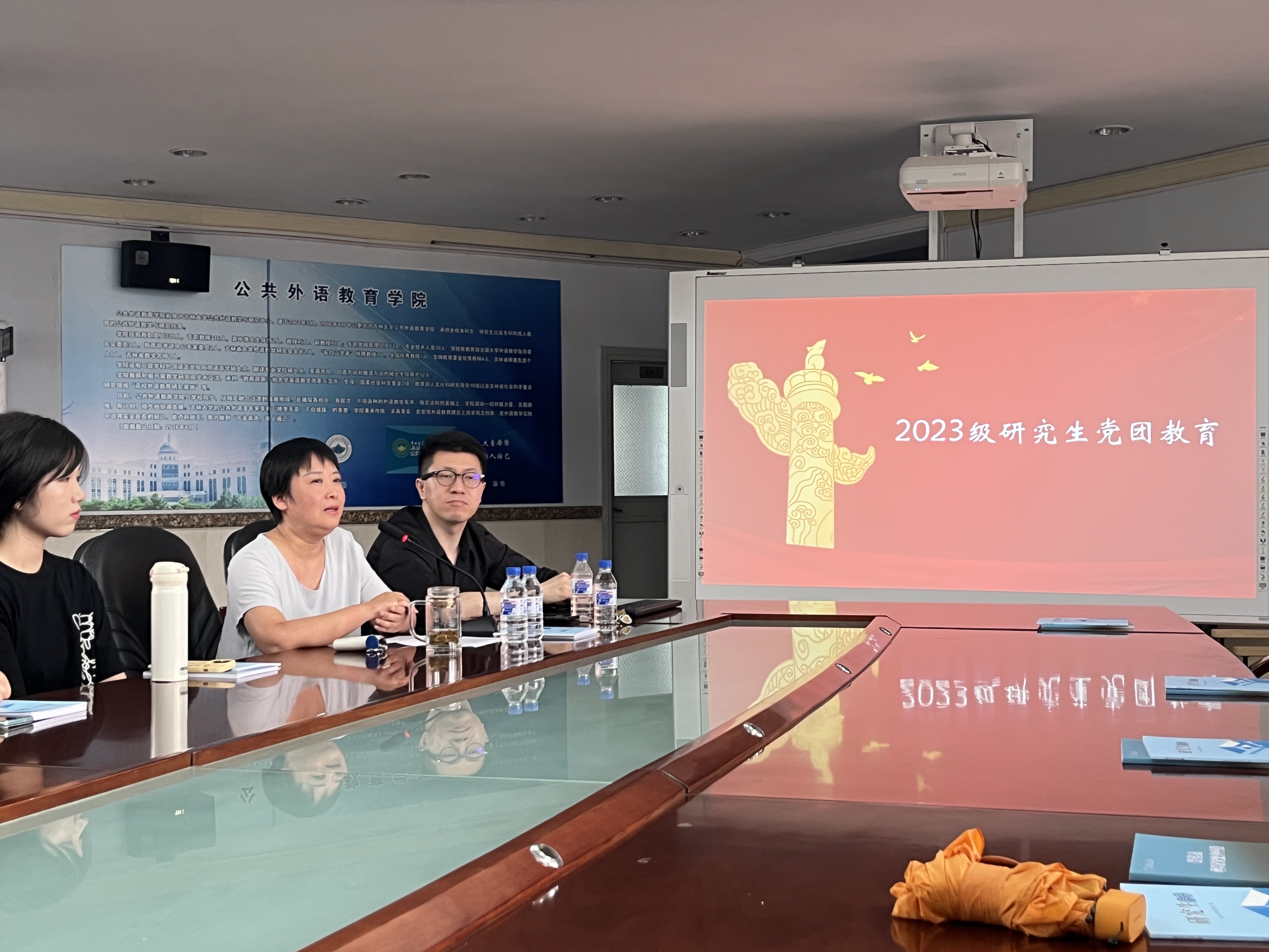 2023年8月25日下午,公共外语教育公司于外语楼六楼大厅为2023级研究生开展了党团教育。本次党团教育由党委副书记徐杰主讲,副经理姜峰列席,教学秘书李萌、研究生辅导员林明帅参会,2023级全体研究生参加。