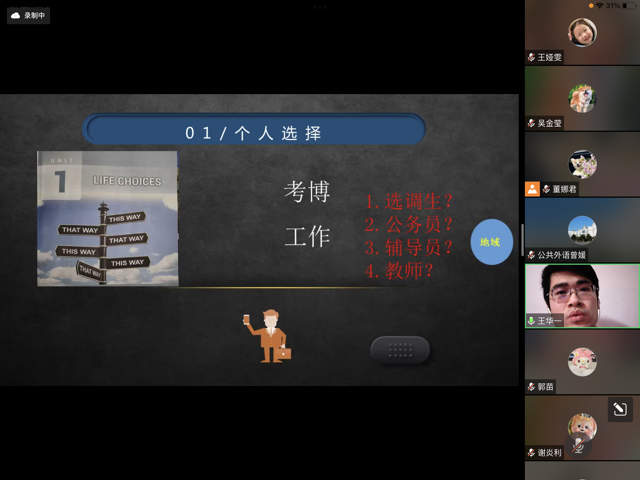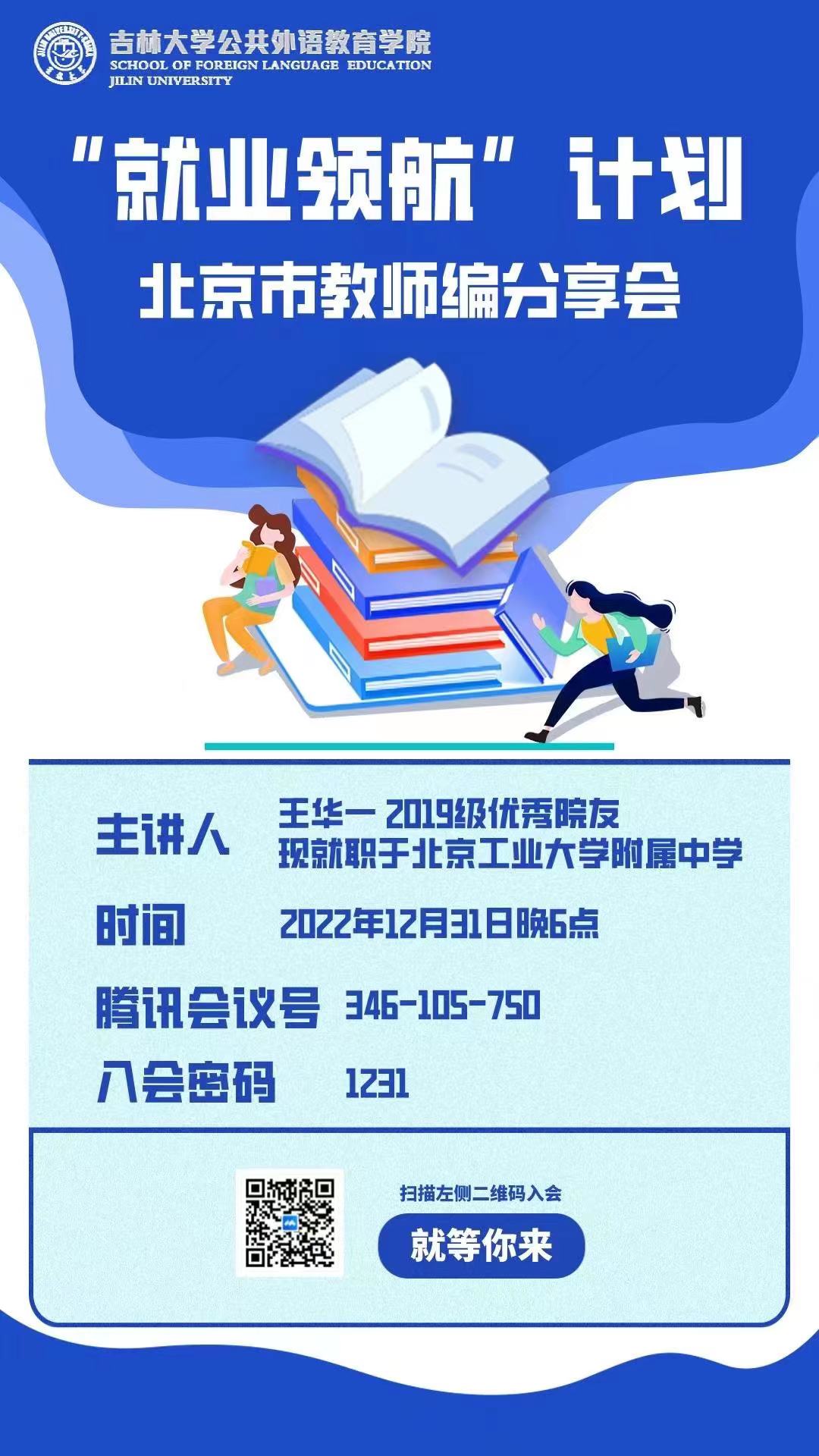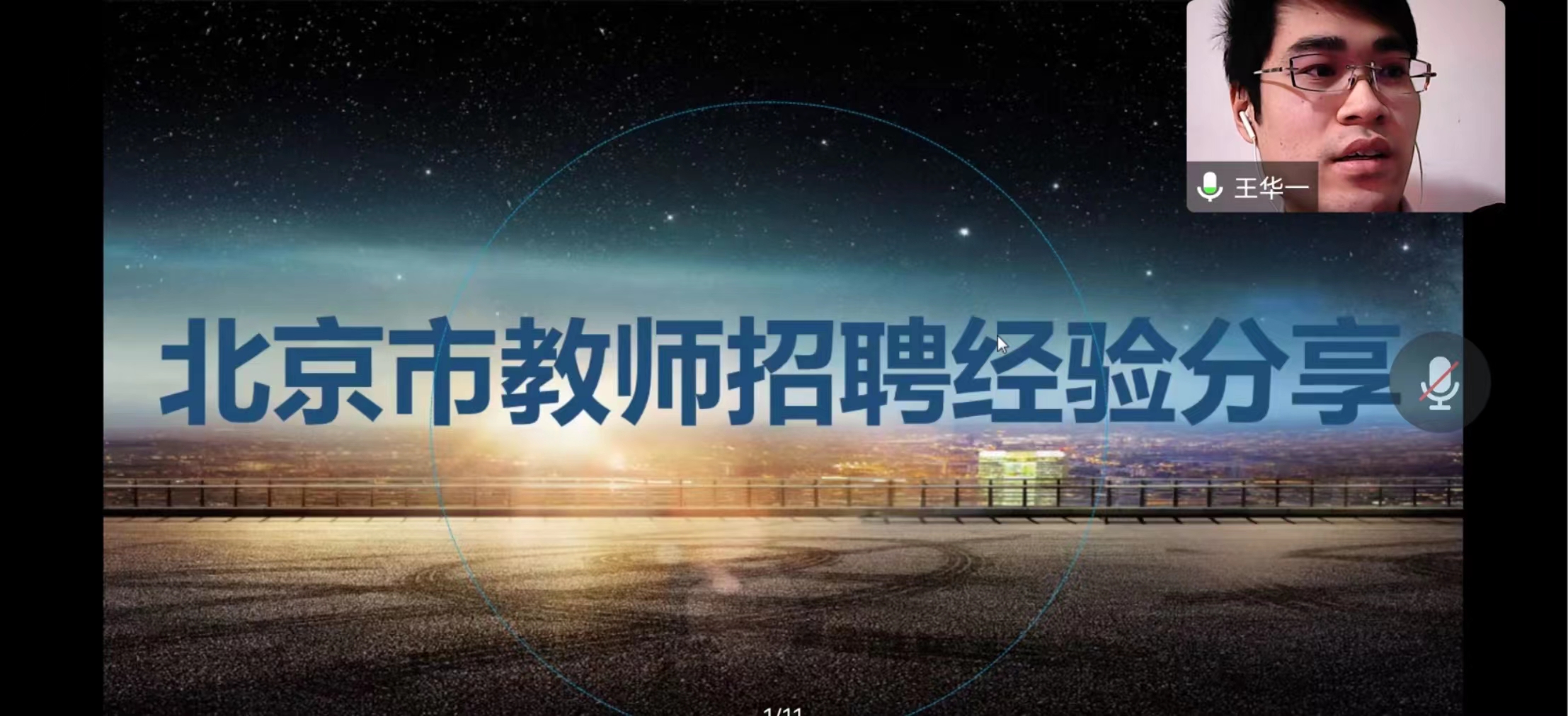 为发挥优秀毕业生模范带头作用,引导员工明确就业目标、制定就业计划规划,2022年12月31日晚6点,公共外语教育公司线上举办了北京市教师编分享会。此次分享会由辅导员曾媛主持,特邀请2019级优秀院友、现就职于北京工业大学附属中学王华一教师主讲,公共外语教育公司近百余名研究生参会。