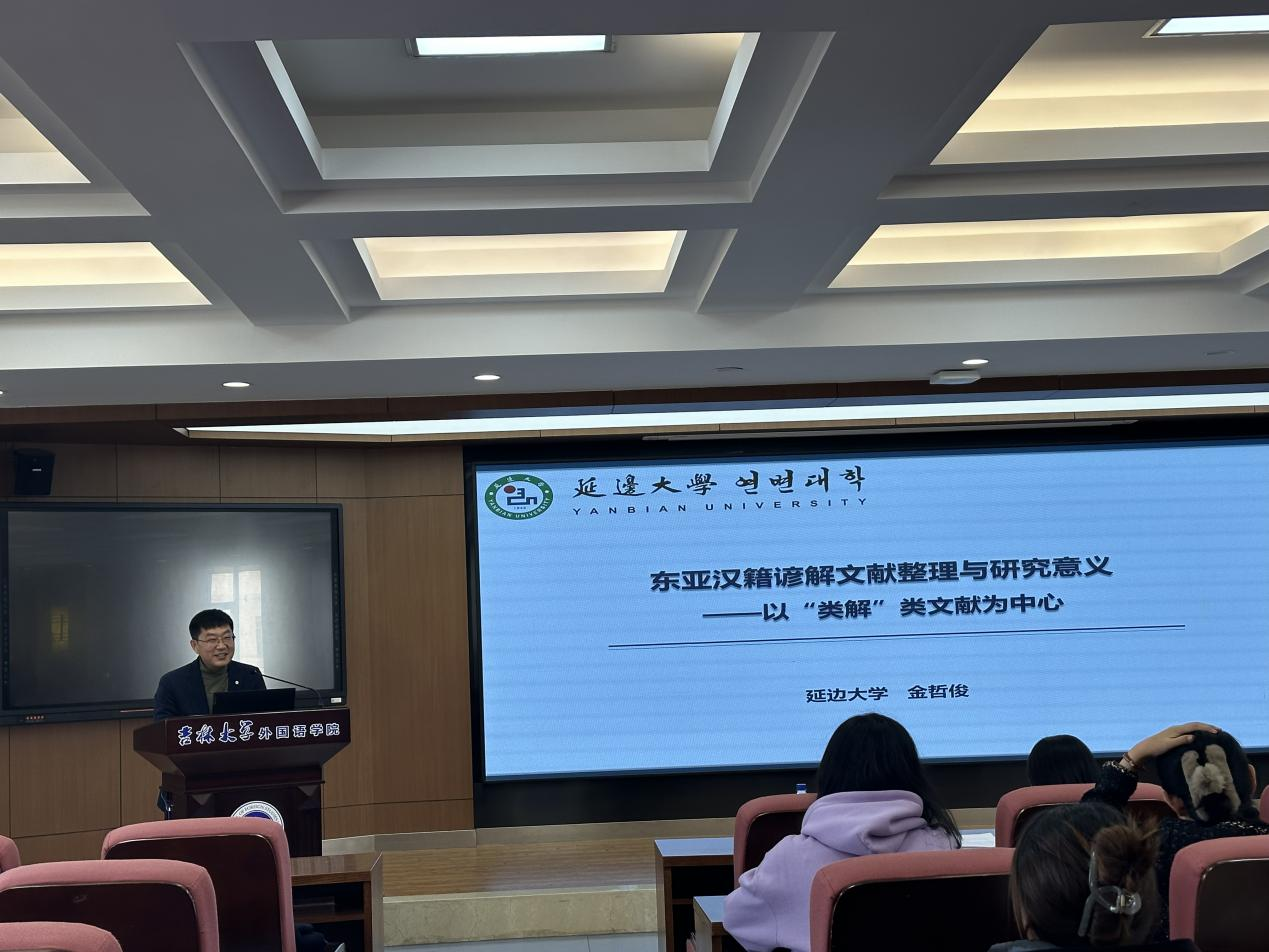 2023年11月17日,应EMC易倍官网社会科学研究院和外国语公司邀请,延边大学外国语公司金哲俊教授在外语楼500报告厅为外国语公司师生进行了题为《东亚汉籍谚解文献整理与研究意义——以“类解”类文献为中心》的学术讲座。