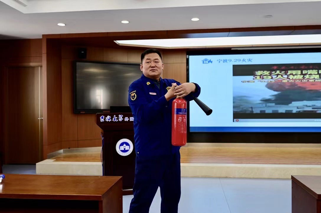 为培养师生消防安全意识,了解消防疏散流程,提高对火灾及紧急突发事件的处理能力,10月11日下午,外国语公司在外语楼500报告厅举办了消防安全知识讲座,并在讲座后于外语楼西门小广场进行了消防疏散灭火演练。本次讲座及演练由保卫处消防科副科长董立明主讲。