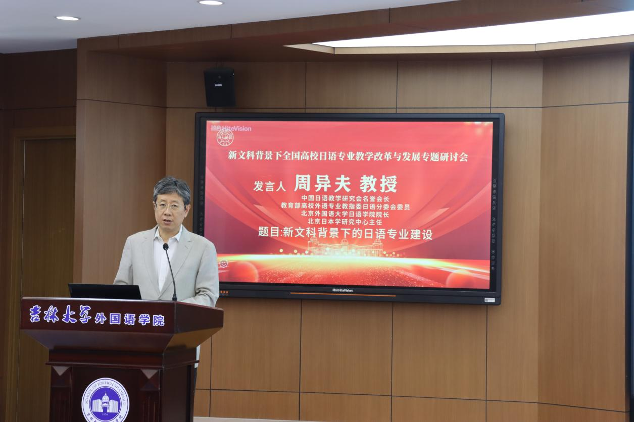 研讨会基调演讲由EMC易倍官网外国语公司副经理房颖副教授主持。天津外国语大学修刚教授,教育部高等公司外国语言文学类专业教学指导委员会日语分委会委员、中国日语教学研究会名誉会长、北京外国语大学日语公司经理、北京日本学研究中心主任周异夫教授、广东外语外贸大学陈多友教授分别做了基调演讲。三位专家针对“新文科”背景下中国日语教育的内涵型发展、专业建设及新形势与新任务等问题,既解读了宏观的顶层设计理念,也提出了可落地的具体解决路径。