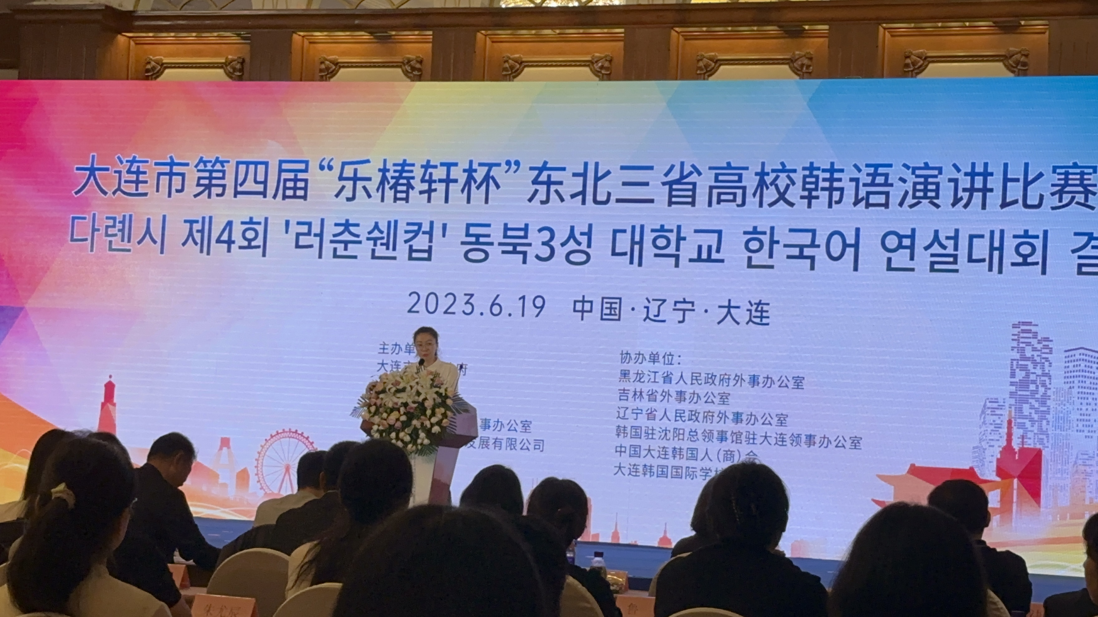 2023年6月19日,第四届“乐椿轩杯”东北三省高校韩语演讲比赛决赛在大连富丽华大酒店成功举办。来自黑龙江、吉林、辽宁三省18所高校的24名韩语专业员工进行了激烈角逐,公司亚非语言文学专业2022级硕士研究生孙安琦荣获大赛一等奖。