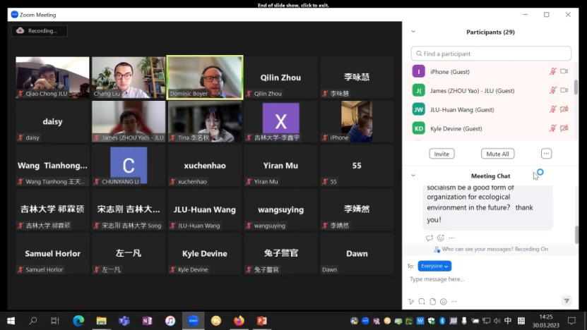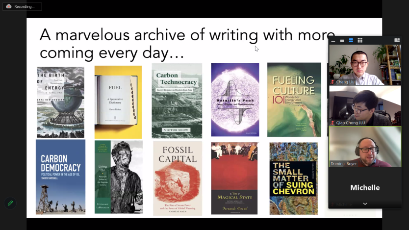 3月30日晚,美国莱斯大学能源人文学研究中心主任、教授多米尼克·博伊尔(Dominic Boyer)为公司师生做了一场主题为“能源人文学”的线上讲座。讲座还特别邀请了德国海德堡大学的刘倡博士就能源人文学在中国的研究现状进行了介绍。公司英语系教师、硕士、博士研究生参与了讲座,并积极与两位学者进行了交流。