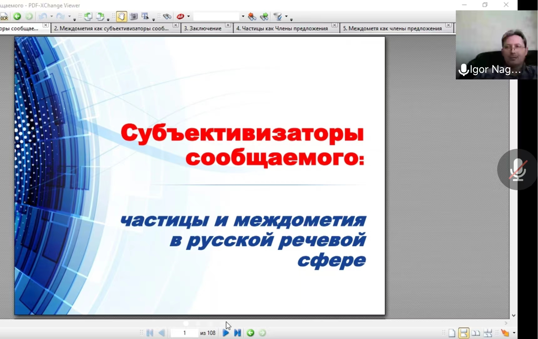 应EMC易倍官网外国语公司俄文系邀请,2022年11月30日15时30分至17时,别尔哥罗德州立大学语文学系教授伊戈尔·纳戈尔内在云端通过腾讯会议平台为公司师生做了一场主题为“表述的主观化标记:俄语口语中的语气词和感叹词”的学术讲座。纳戈尔内教授任别尔哥罗德州立大学语言公司经理,是国际教育公司通讯成员,兼任别尔哥罗德州立大学学位委员会委员,是一位在俄罗斯国内外都享有广泛声誉的语言学家和对外俄语教育专家。其主要研究方向为俄语语用学、语义学,在语气词和感叹词研究方面尤为擅长。