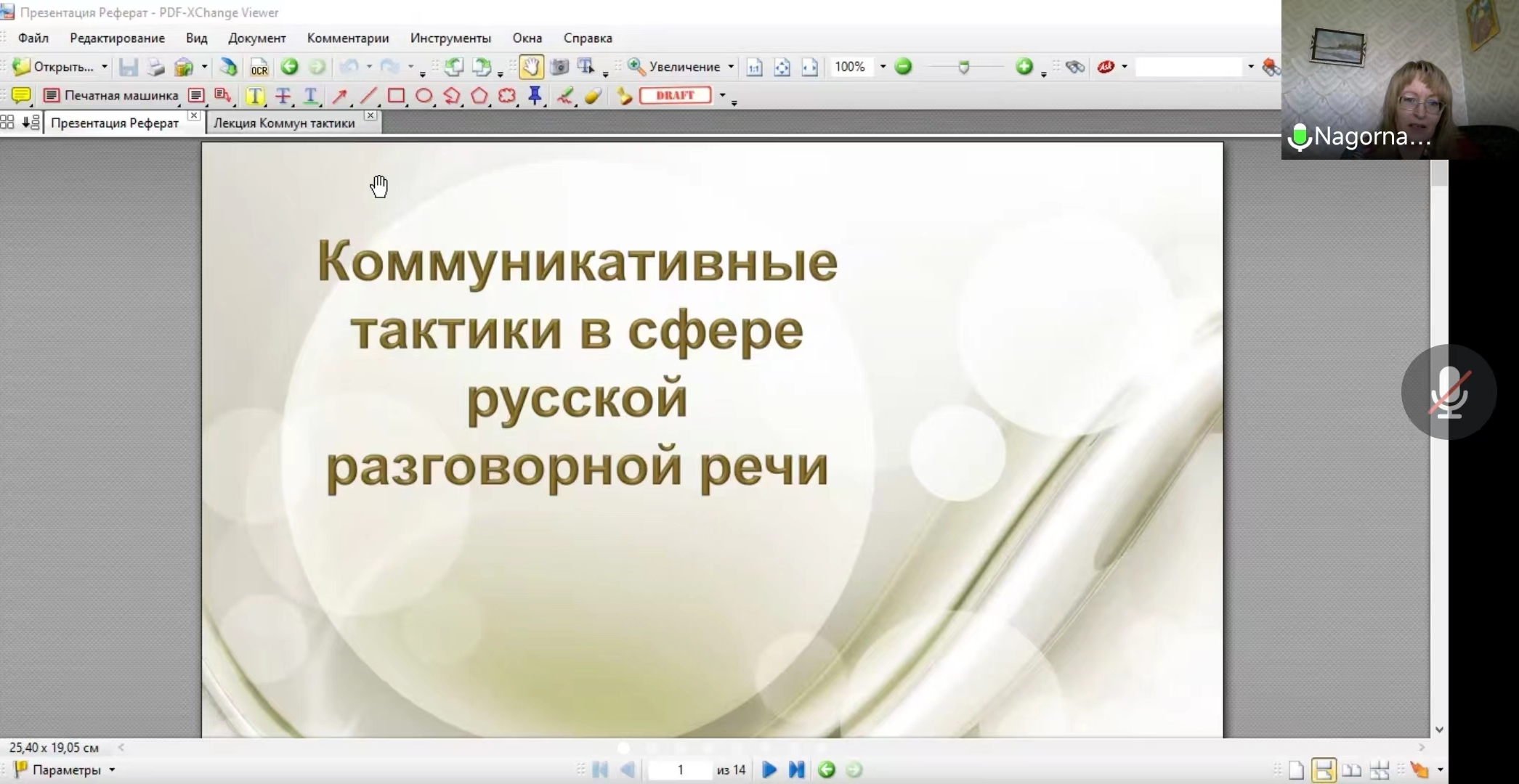 本次讲座纳戈尔娜娅介绍了“交际”和“口语”的概念,分析了上述概念的内涵和外延以及构成要素,在此基础上阐述了交际效果的界定、达成交际效果的途径以及对交际双方(尤其是说话人)的能力要求。她以丰富详实的语料,结合具体的交际过程,说明了语言规范、言语礼节和社会地位等因素对交际效果的影响,并且对交际策略的选择和使用进行了深入细致的探讨。