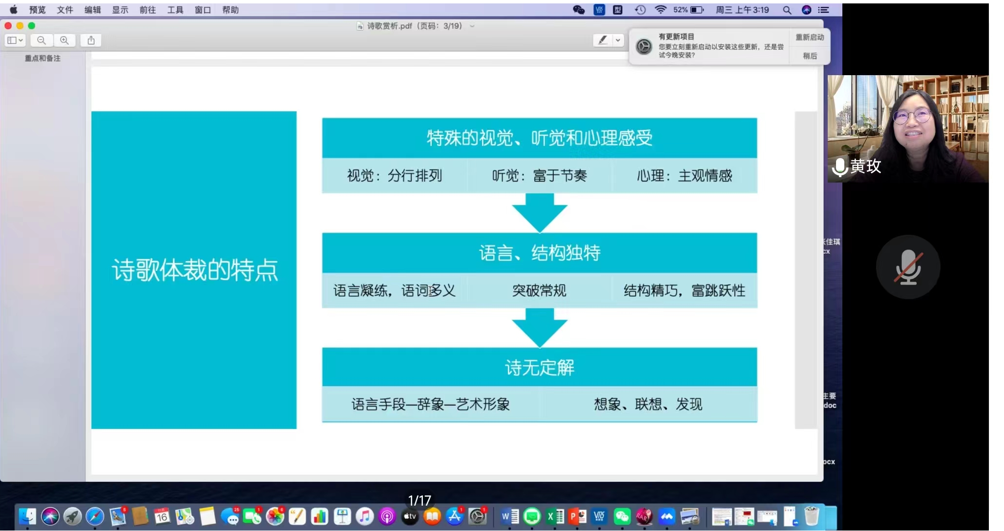 应EMC易倍官网外国语公司邀请,2022年11月16日19时,北京外国语大学教授、博士生导师、博士后合作导师黄玫老师在云端通过腾讯会议平台为公司师生做了一场主题为“诗歌文本赏析及研究路径”的学术讲座。黄玫教授兼任教育部高等公司外语教学指导委员会委员、中国高等教育协会外语教学研究分会常务理事、中国巴赫金研究会副会长,中国外国文论与比较诗学研究会理事、中国俄罗斯文学研究会理事、中俄友协理事、中国对外友协中亚友好协会常务理事等。