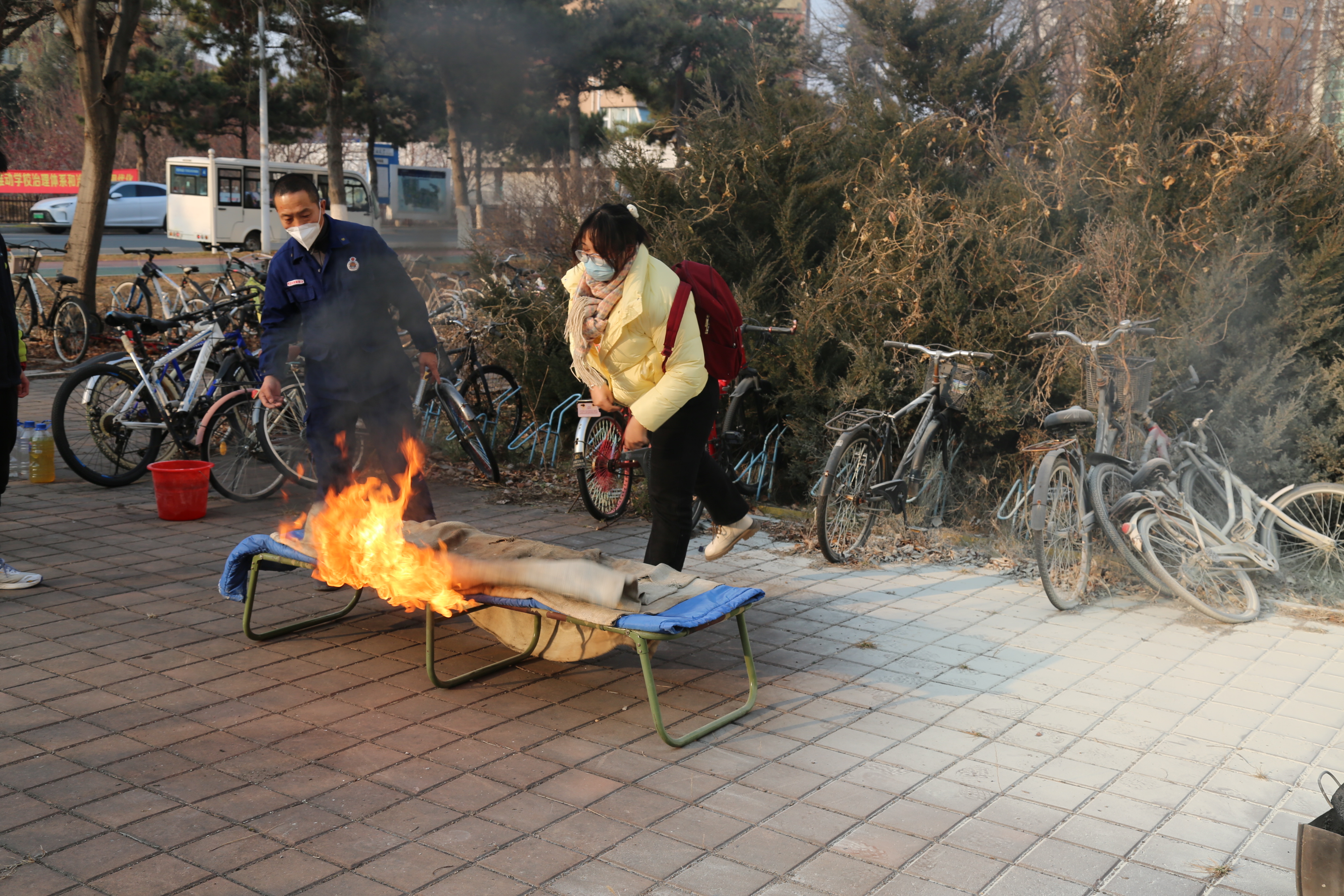 讲座结束后,消防科工作人员组织两公司师生进行了消防疏散演练,分别演示了灭火器、灭火毯等消防器材的使用方法,并带着现场师生进行了实际操作,使师生们真正掌握了逃生技能与灭火要领。