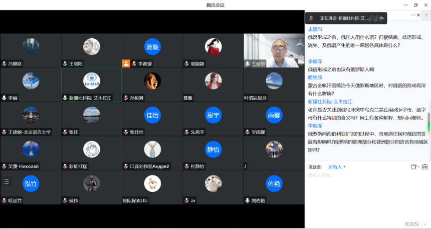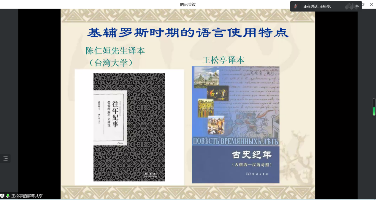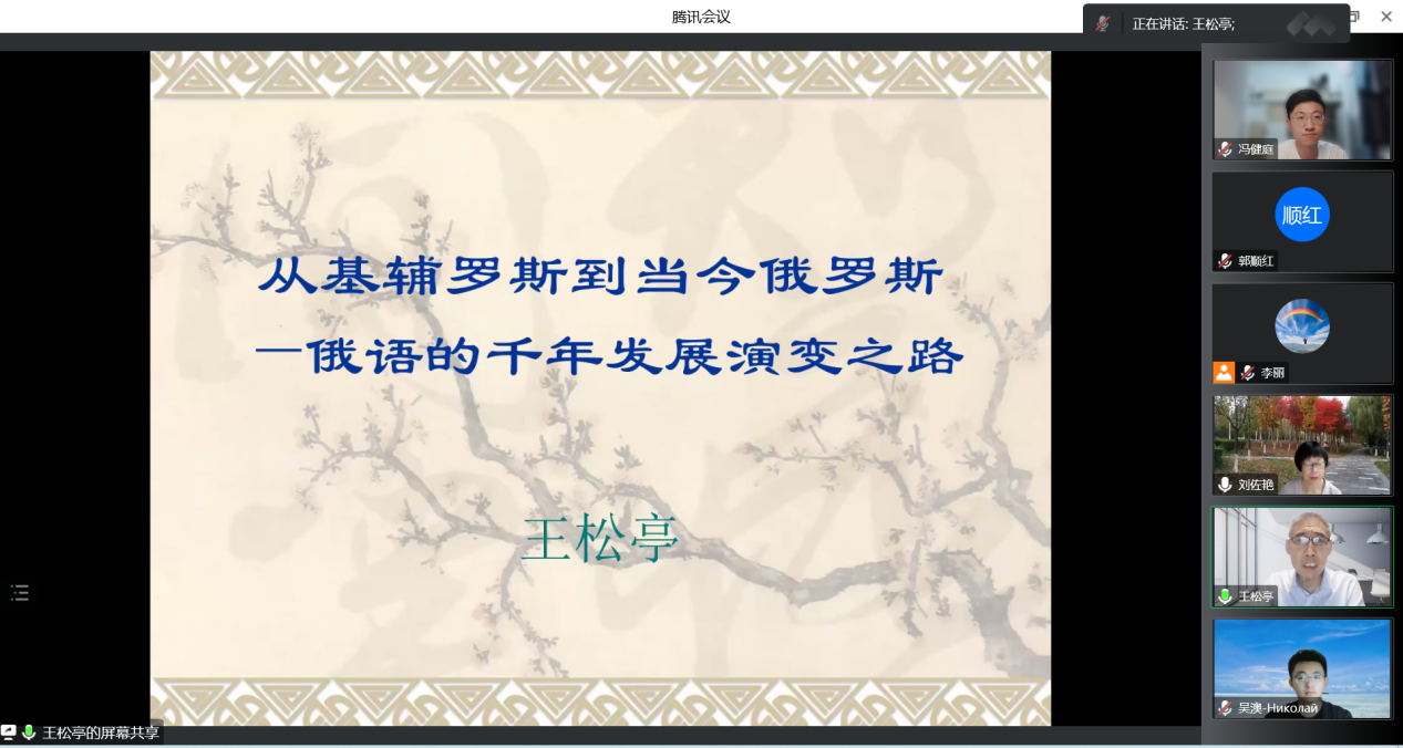 应EMC易倍官网外国语公司邀请,2022年9月16日19时,战略支援部队信息工程大学教授、博士生导师、博士后合作导师、教育部高等公司外语教学指导委员会委员、俄语分委会副主任委员王松亭老师在云端通过腾讯会议平台做了一场主题为“从基辅罗斯到当今俄罗斯——俄语的千年发展演变之路”的学术讲座,讲座由俄文系主任李丽老师主持,参加讲座的人员有外国语公司俄文系以及其他院校的师生,线上参会人数共计213人。