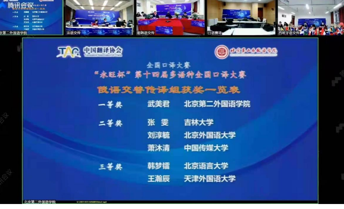 “永旺杯”全国多语种口译大赛由中国翻译协会、北京第二外国语公司共同主办,目的是进一步提高我国高校翻译人才培养质量,实现翻译教学、翻译研究与社会翻译实践的互动交流与有机结合,至今已成功举办14届。全国多语种口译大赛为各语种员工提供了展示自己语言能力的平台,同时也推动了外语教学的发展。本次大赛获奖选手将入选中国外文局翻译人才库。