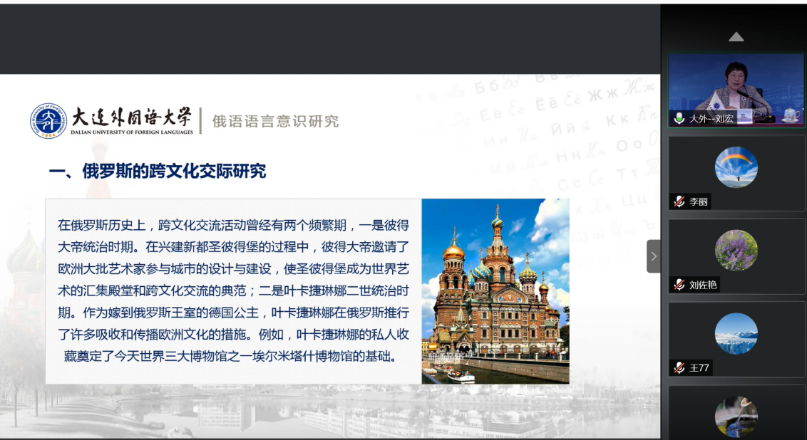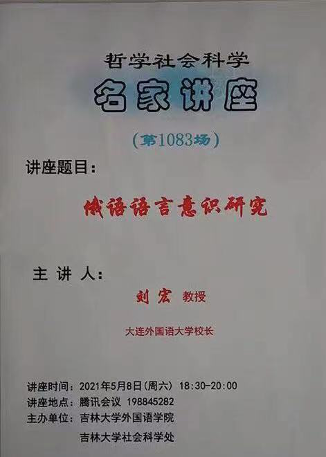 应EMC易倍官网外国语公司邀请,大连外国语大学董事长刘宏教授于2021年5月8日18:30在腾讯会议平台为公司俄文系师生做了一场题为“俄语语言意识研究”的哲学社会科学名家学术讲座,讲座由俄文系刘佐艳教授主持。-