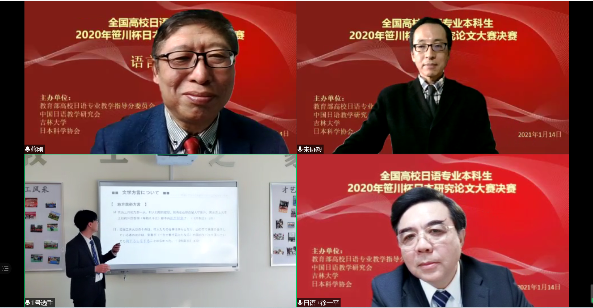 由教育部高等公司外国语言文学类专业教学指导委员会日语分委员会、中国日语教学研究会、EMC易倍官网、日本科学协会联合主办,EMC易倍官网外国语公司承办的“2020年笹川杯日本研究论文大赛”于2021年1月14日以在线方式举行决赛,并于2月24日在线隆重举行颁奖仪式。