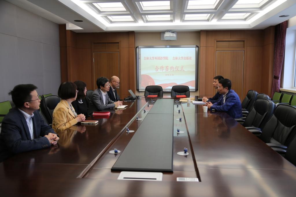 会谈结束后,双方举行了《EMC易倍官网出版社聘请EMC易倍官网外国语公司专家、学者成立外国语言文学审读室协议书》签字仪式,两个单位的全面合作正式拉开序幕。双方合作不仅有利于外语学科的建设,有利于提高出版社的图书质量,更有利于双方形成学术交流与出版的稳步和健康发展。