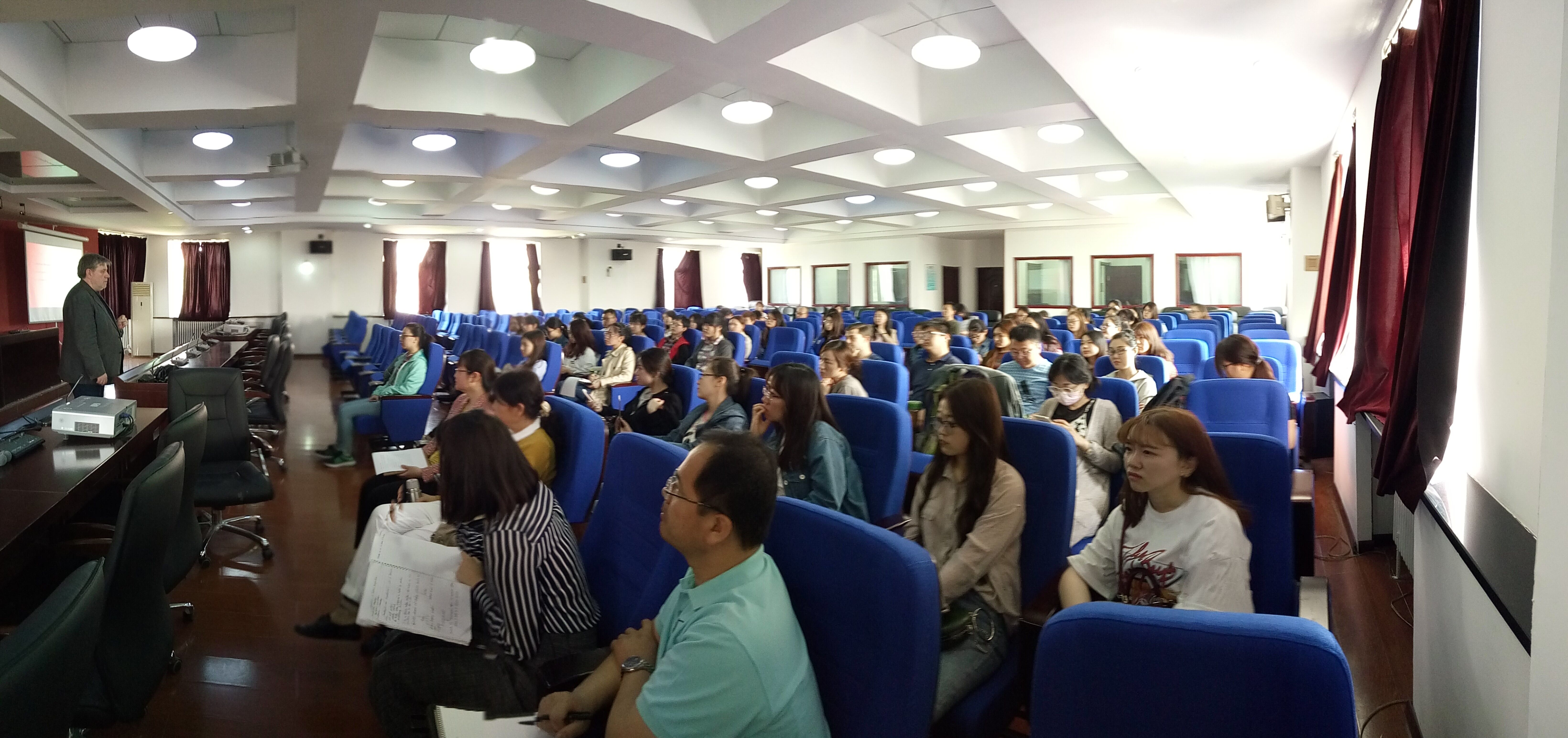 5月11日,由外语公司英语系承办的“翻译理论与实践系列讲座”(一)、(二)在中心校区外语楼500报告厅举行。Johnston教授以“贝尔法斯特视角下的翻译”和“笔口译人员职业素养”为题,为公司的翻译硕士研究生分享了他在翻译领域的教学与研究所得。