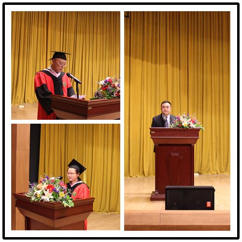 典礼在庄严的国歌声中拉开帷幕。副经理胡建军副教授、张玫玫教授分别宣读获得学士学位和硕士学位的毕业生名单。周异夫经理、胡建军副经理、张玫玫副经理为本科生和研究生毕业生授予学士、硕士学位并颁发学位证书。随后,毕业生代表孟天兰、范慧杰发言,表达了对母校的感激之情,对同学老师的不舍之情;教师代表柳晓东老师发表致辞,为毕业生们送上了临别的叮咛和温暖的祝福。